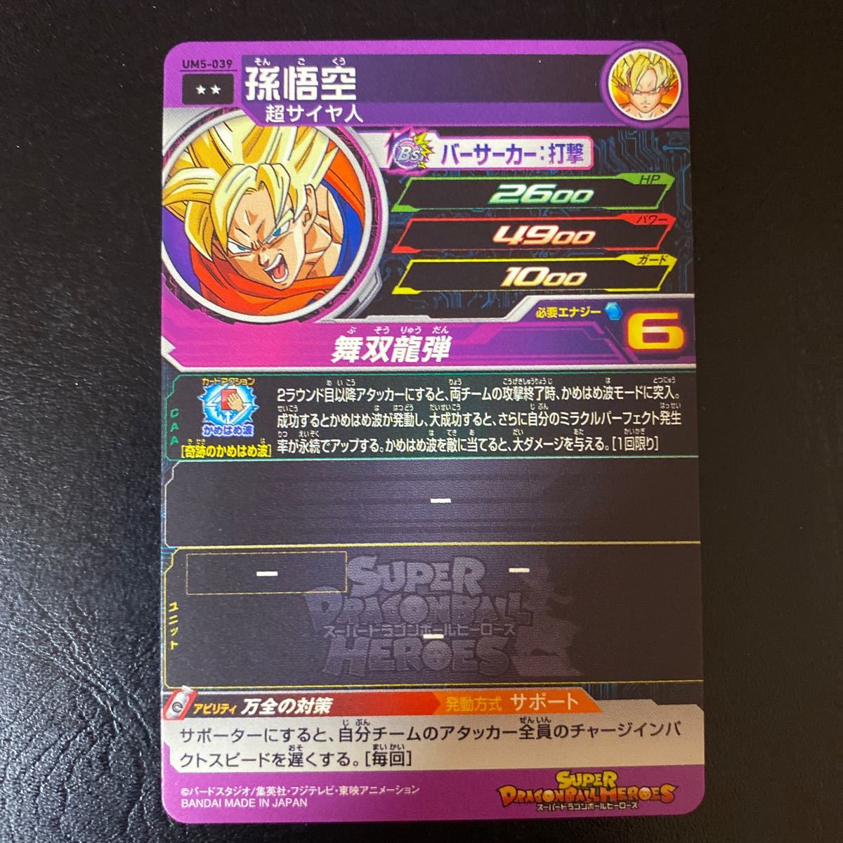 UM5弾レア/ 孫悟空(超サイヤ人)/ UM5-039/ 技:舞双龍弾/ スーパードラゴンボールヒーローズ/ レアリティ:☆☆/ BANDAI