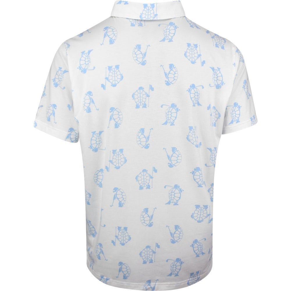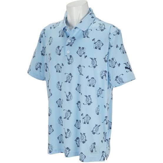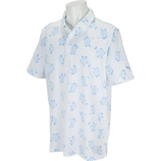 全面にデザインされたフローラル柄が特徴の半袖ポロシャツ。