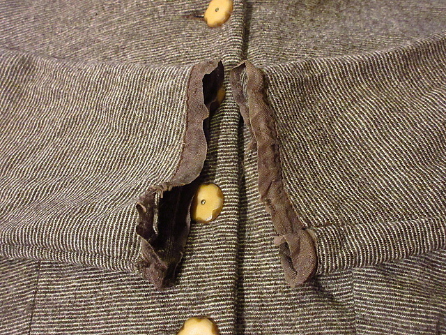 静岡県富士市にあるCOZY VINTAGEです。 海外から直接仕入れた古着、雑貨などを扱っています。 ホームページもございますので、そちらもチェックしてみてください。 https://www.used-cozy.com こちらの商品は佐川急便元払い60サイズです。 ◆サイズ◆ 肩幅・・・約40.5cm 身幅・・・約47.5cm 袖丈・・・約57cm 着丈・・・約48cm (計測箇所によって多少異なりますのでだいたいの目安としてお考えください。) ◆状態◆ フロント上部に約1cm程のダメージがあります。 フロントに数mm~約1cm程のダメージが4点程あります。 右脇に約2cm程のステッチのほつれがあります。 左袖に約5mm程のダメージがあります。 右袖に数mm程のダメージが4点程あります。 両袖先にステッチのほつれやダメージがあります。 バックに数mm程のダメージが3点程あります。 ダメージ、汚れが気になる方、神経質の方はご遠慮下さい。 ◆商品詳細◆ 素材は、おそらくウールと思われるニット地です。 色は、茶と白に近い色合いです。 裏地は付いていません。 正確な年代が分かりませんが、1940年代以前の物かと思います。 細いボーダーパターンで、スタンドカラーの良いデザインのジャケットです。 210217s2-k-jk ◆ビンテージ古着、レトロな雑貨などの卸もお気軽にご相談ください。 ◆info@used-cozy.comまでお気軽にメールくださいね!! |