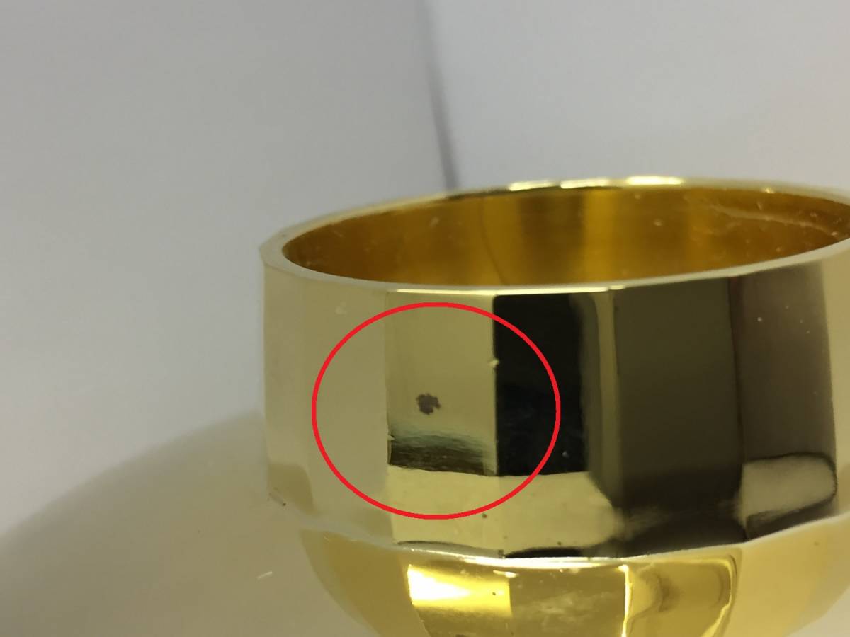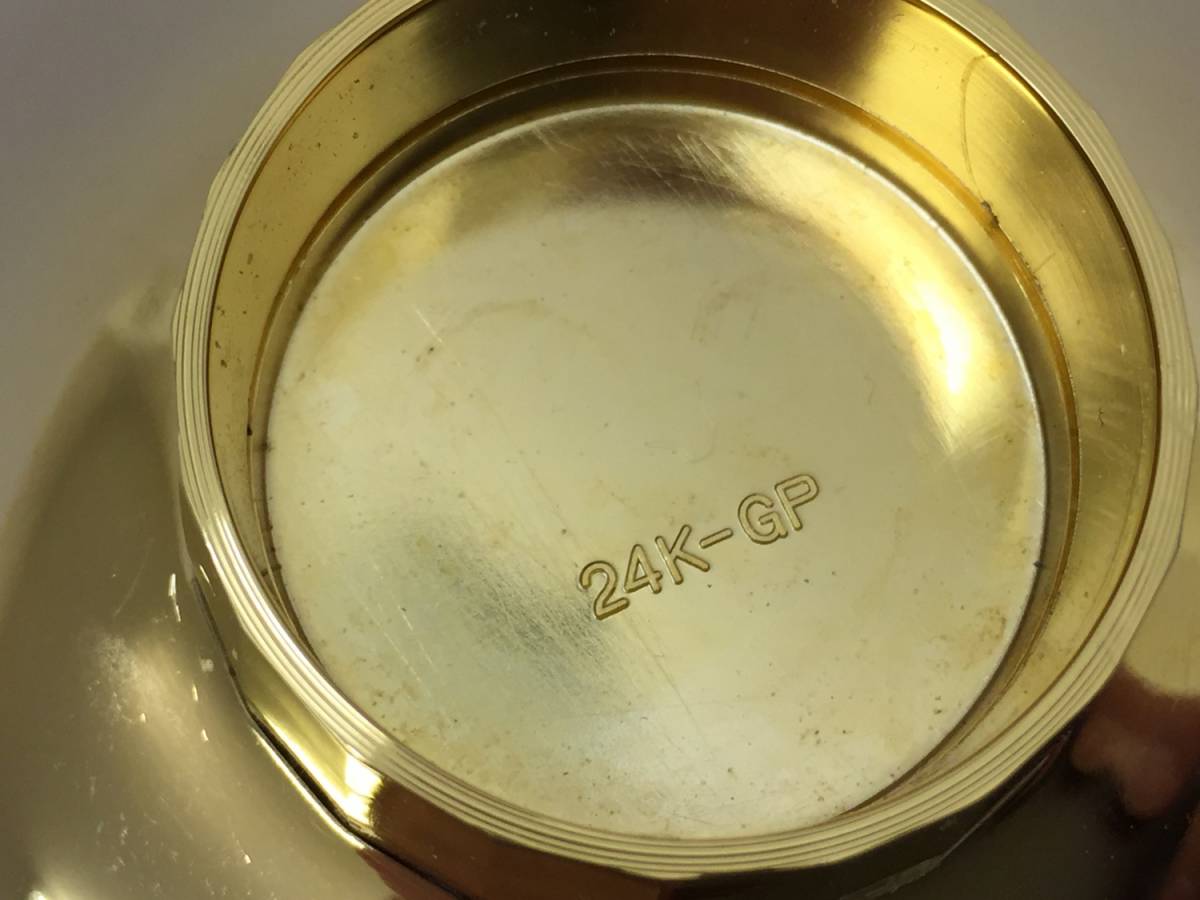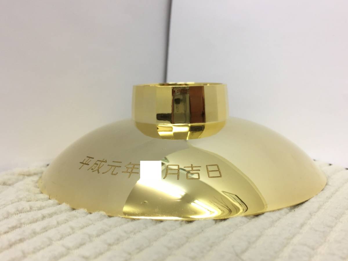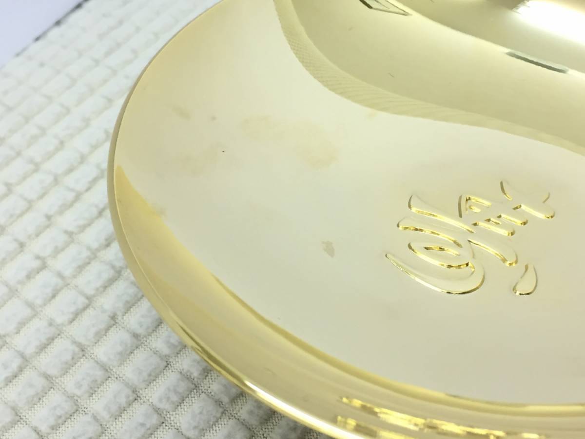 | 商品説明 | ◎サイズ ※多少誤差は生じると思います。 直径:約10.5cm 高さ:高台込で約3cm 重さ:約192g ◎状態 中古。 24KGPとは金メッキという意味です。 ピカピカの鏡面です。 全体的に擦り傷やくすみがあります。 画像6の赤丸印部分には剥げ?黒ずみ?のような痕跡があります。 米寿の記念品らしいです。 名前と誕生日らしき月が刻印されていたので、画像では 白抜き加工で隠しました。実物はしっかり刻印されています。 平成元年と刻印されているので、30年以上前の年代物の品です。 箱や説明書などありません。画像8に写っているオレンジ色の 布に包まれていました。なのでこの布に包んで発送します。 布は経年の影響かシミだらけです。カビでしょうか? 年代物にしては、状態は良い方だと思います。 | ||||||