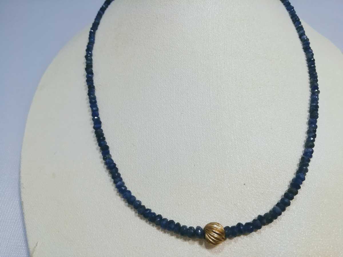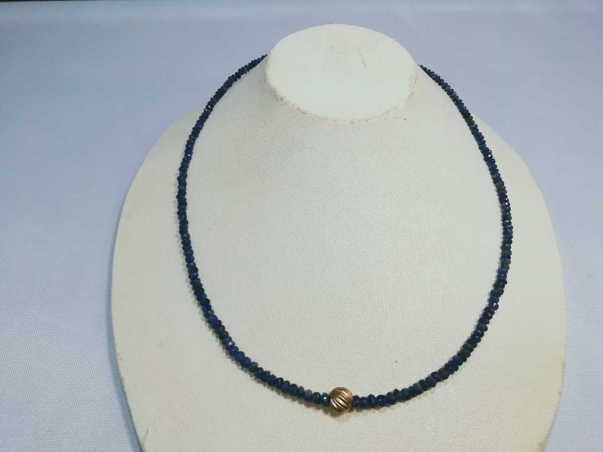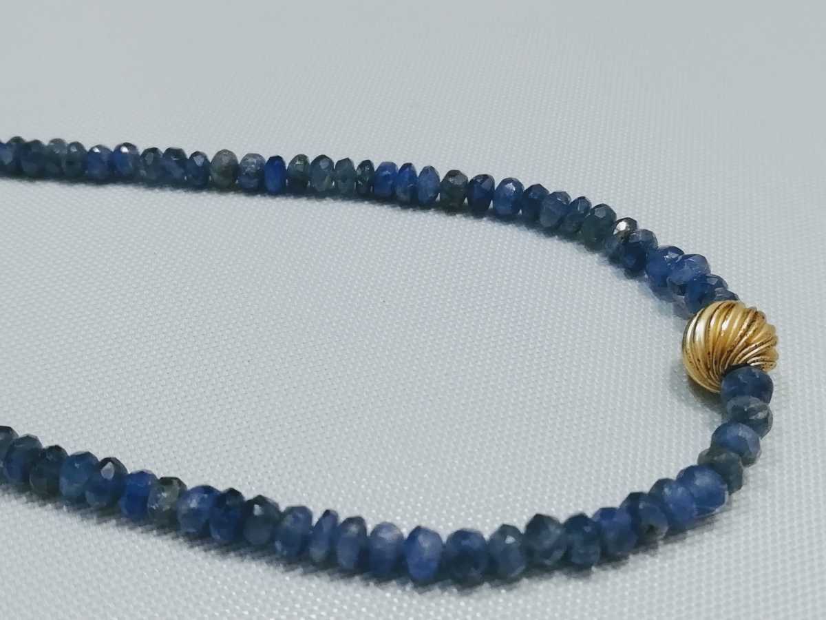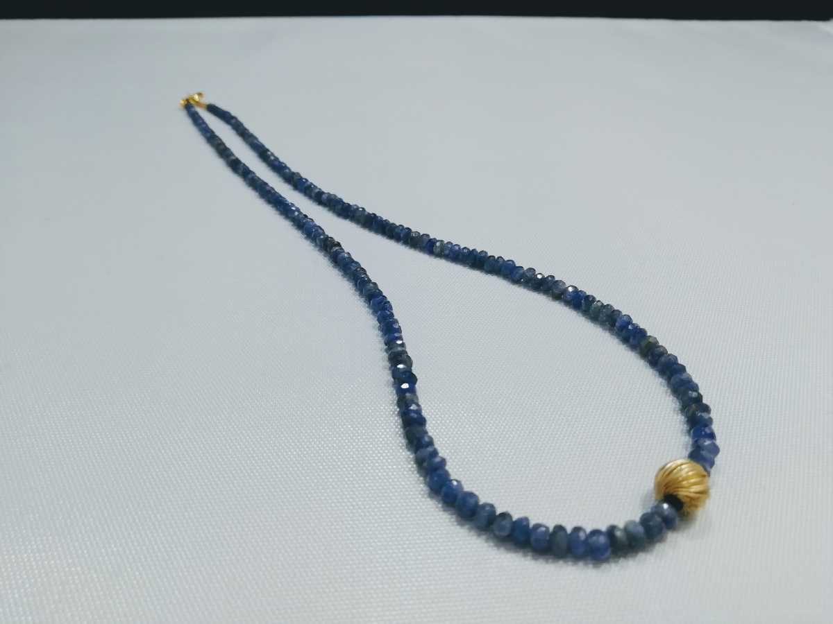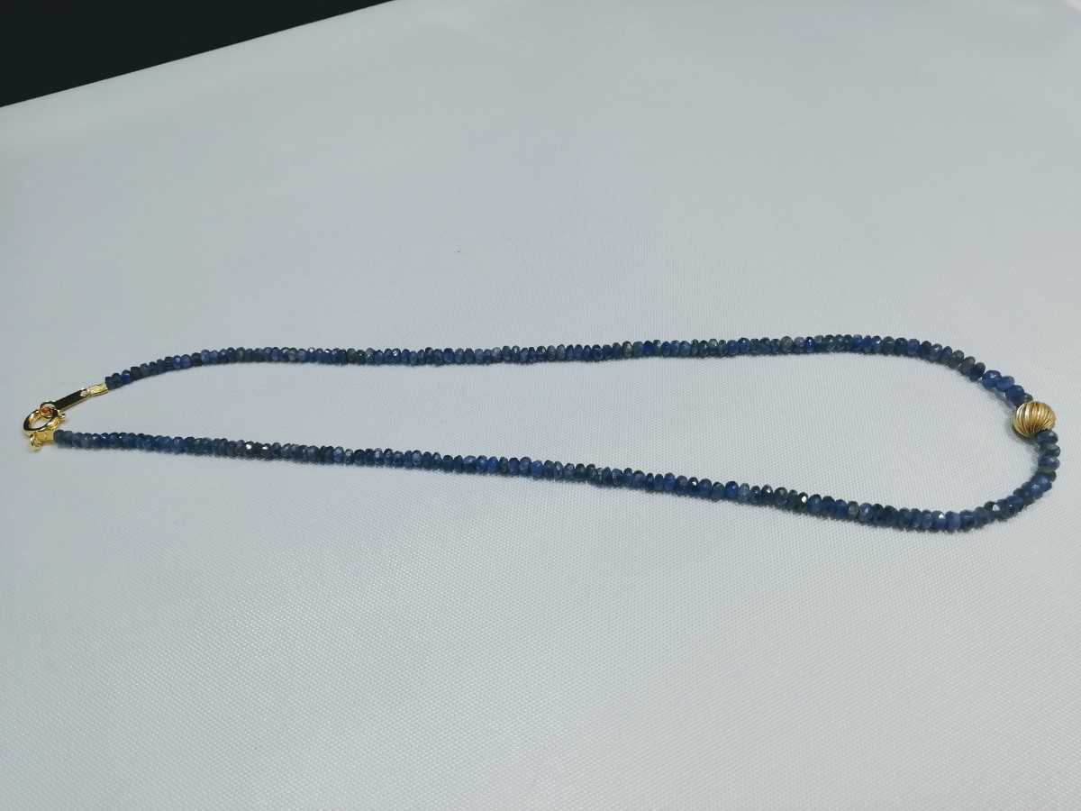 スリランカ原産天然ダイアカットサファイアK18メロンカットボ-ルワンポイントデザインネックレス