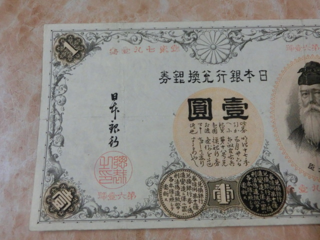 ★ 改造兌換銀行券1円 漢数字1円 上美品 ★ No.6