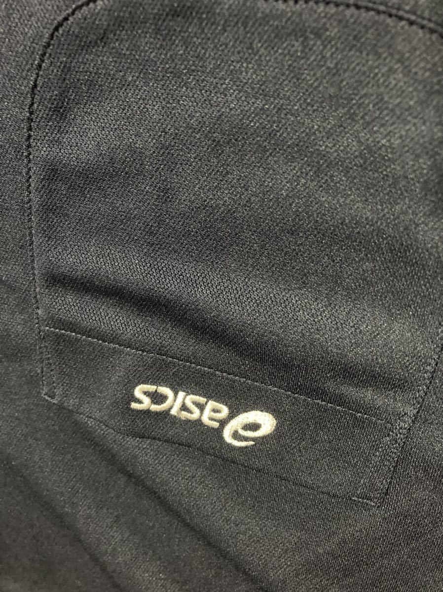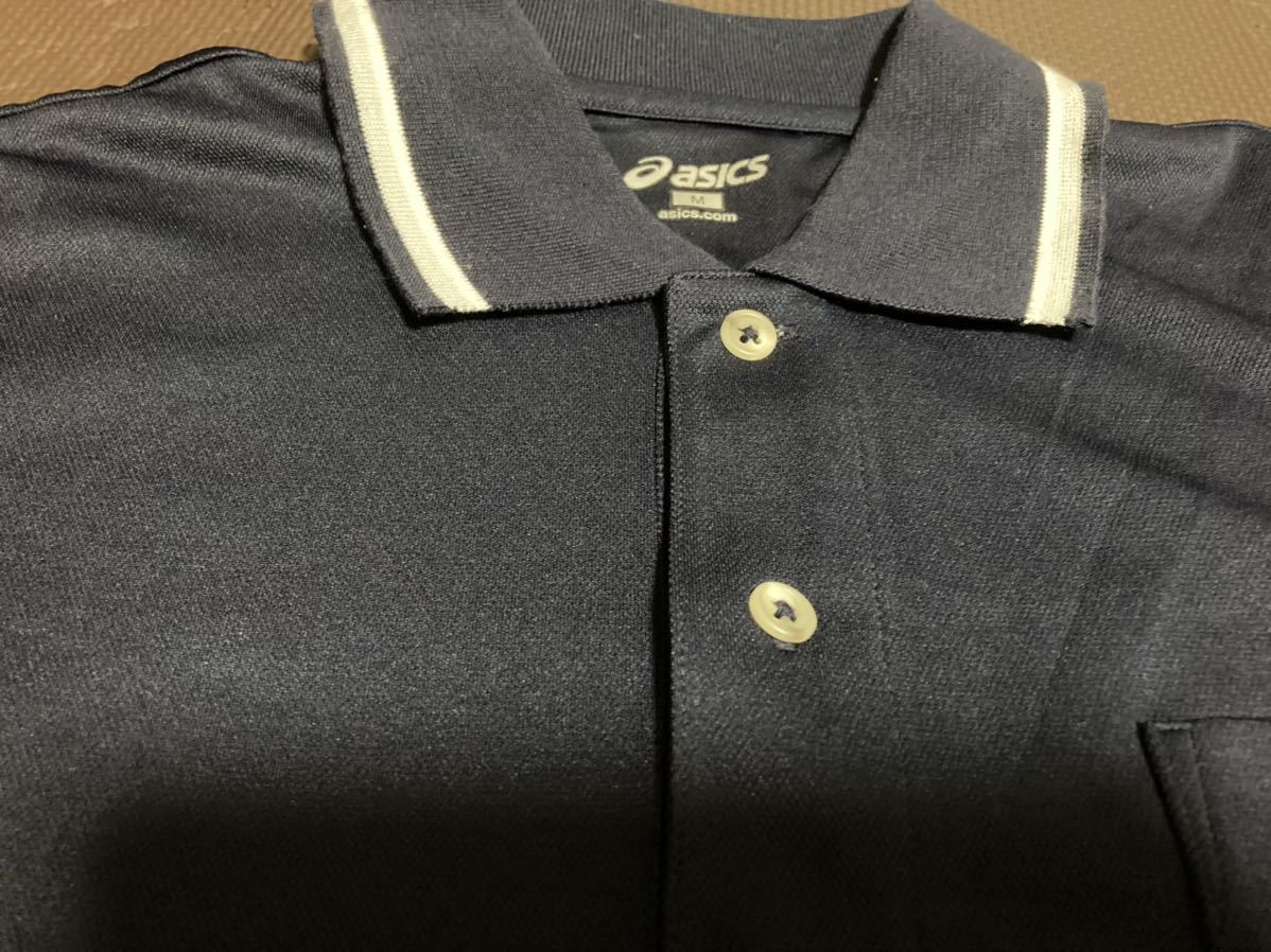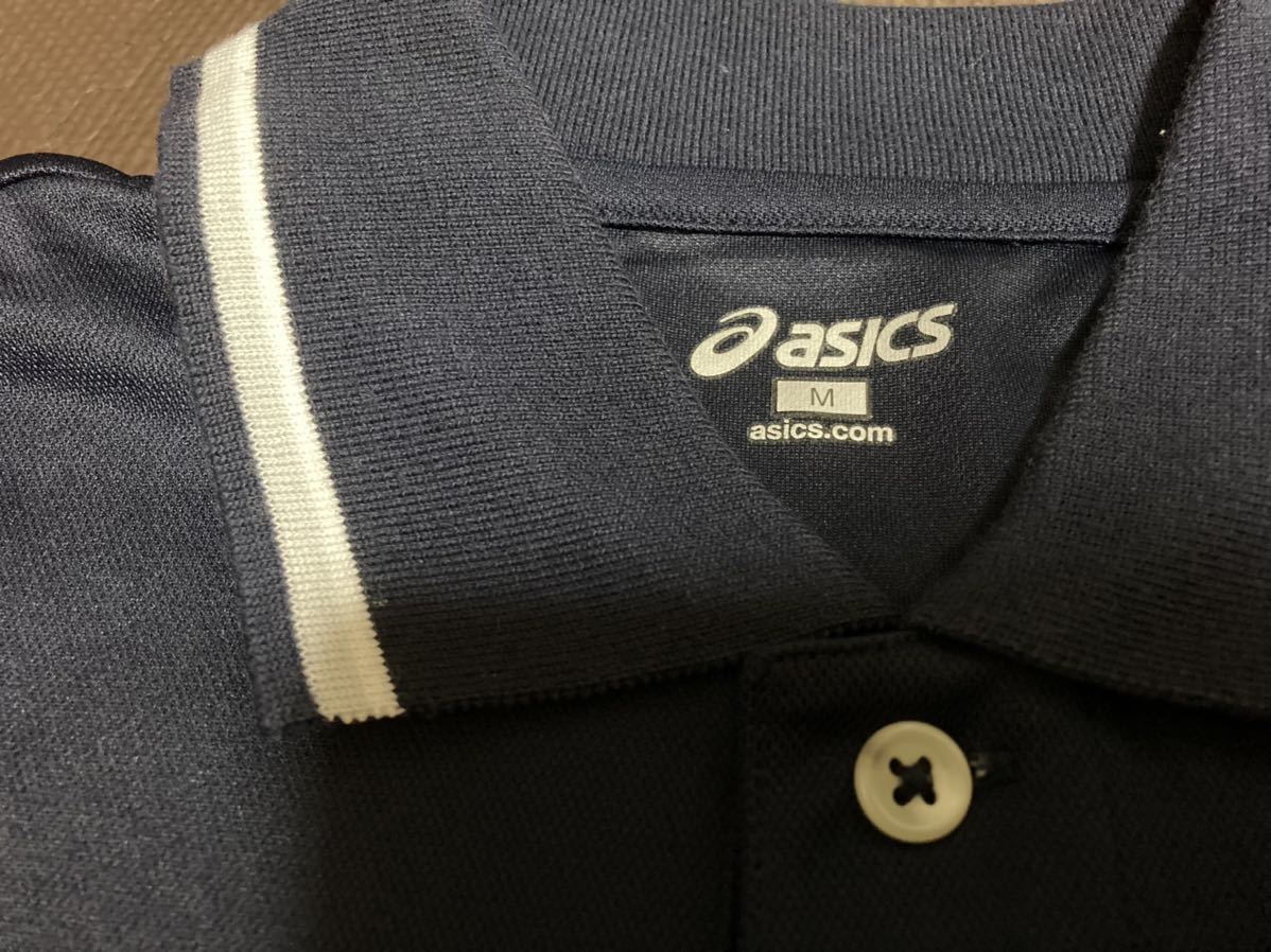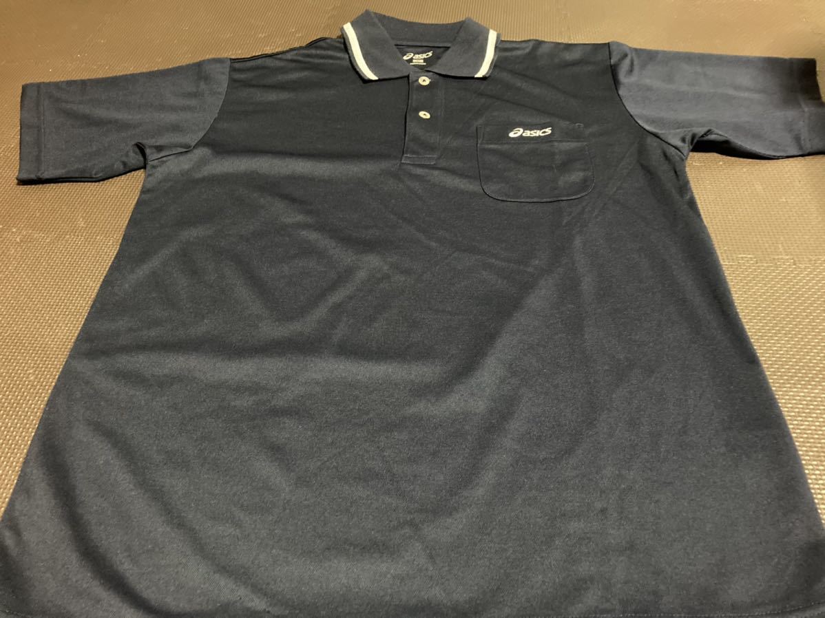 新品ASICS濃紺、ロゴ白(刺繍)半袖ストレッチトップス