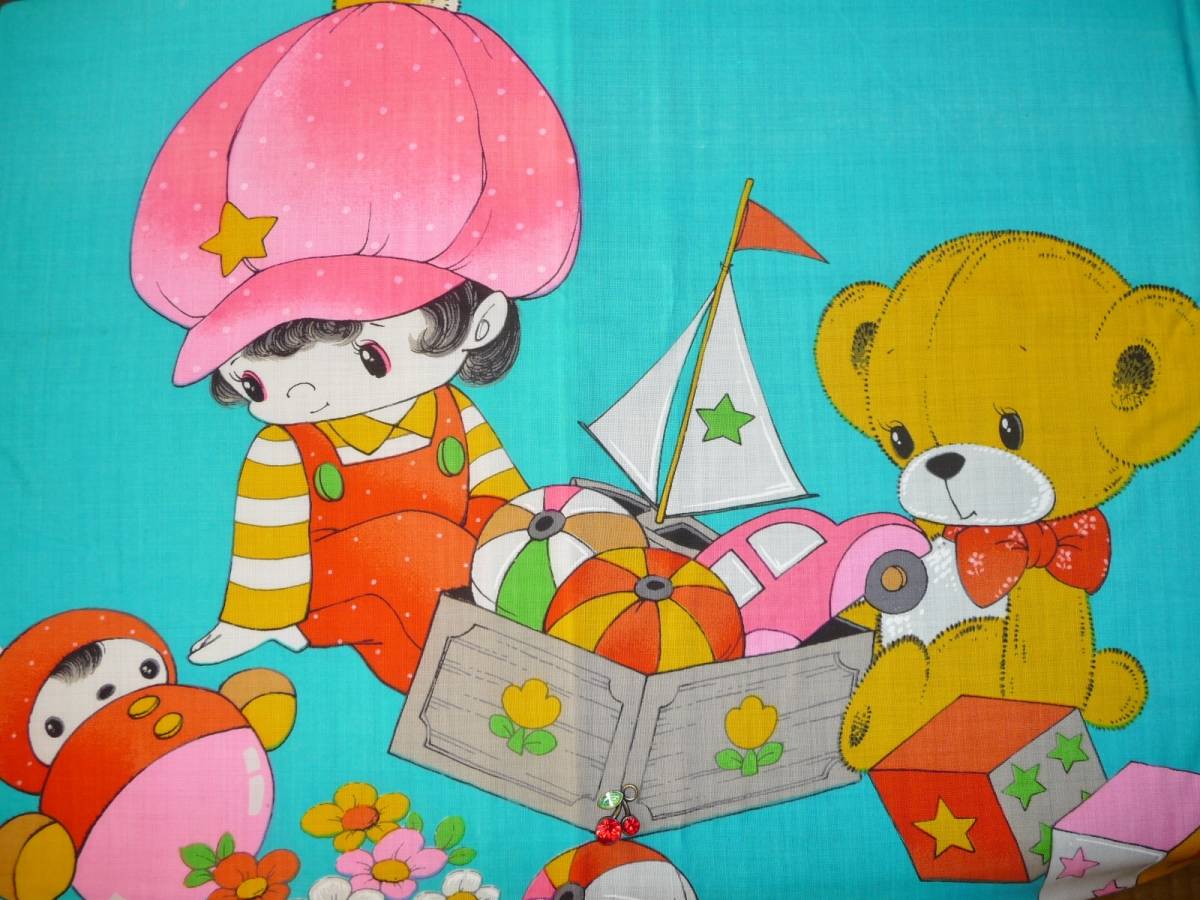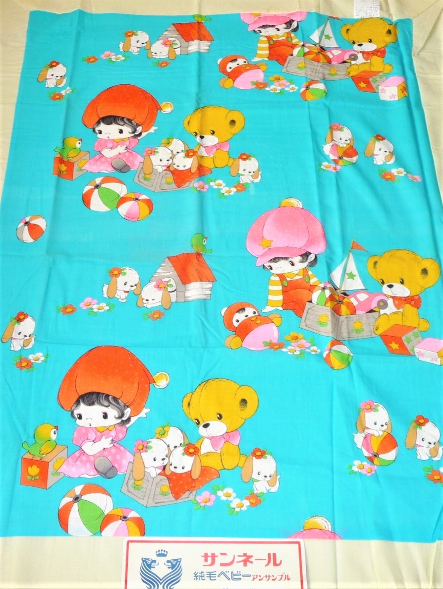即決★昭和レトロベビー布団掛ブルー★アニマルクマ子ども純毛宇山