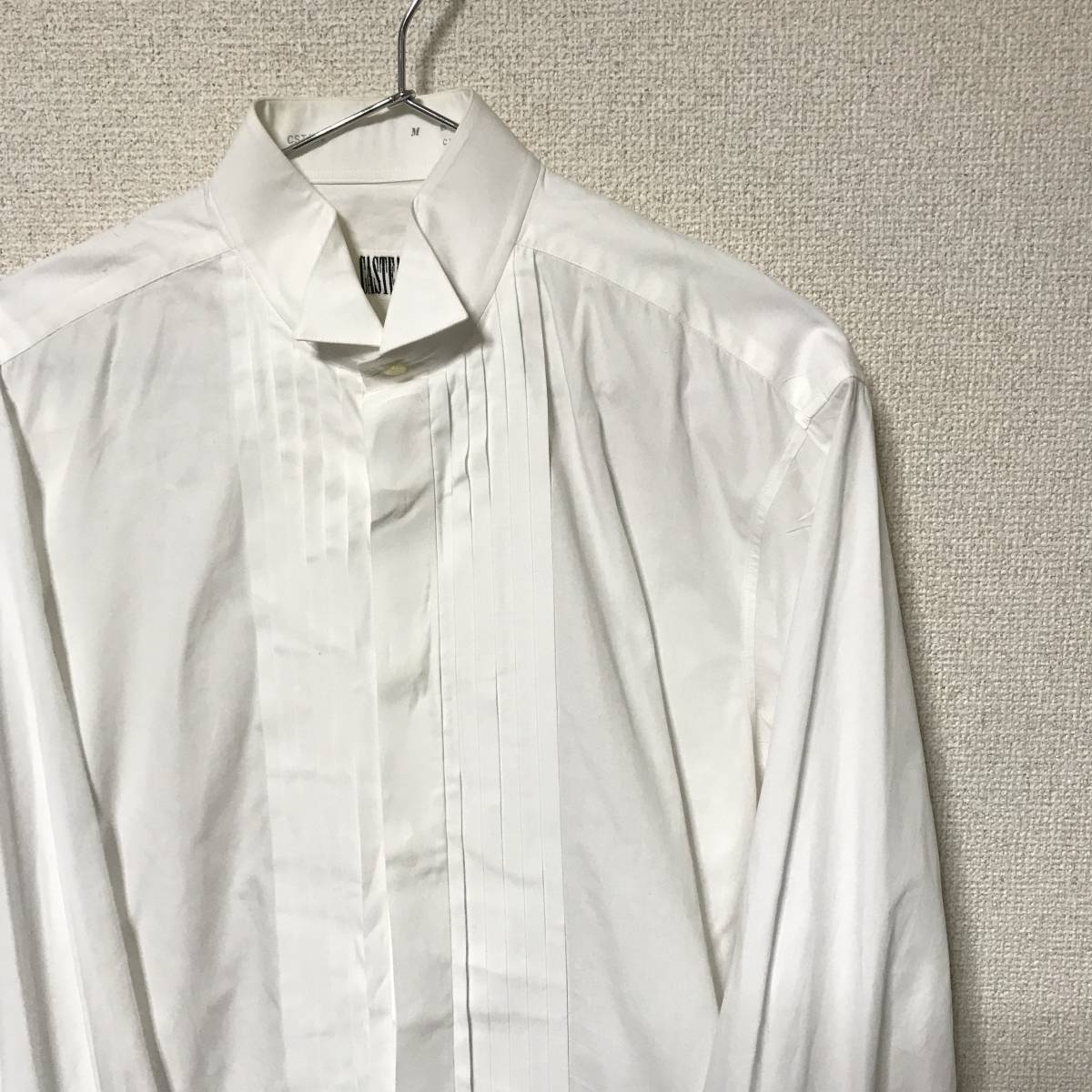 ★CASTEANI(キャスティーニ)★メンズ ウィングカラー プリーツ ドレスシャツ フォーマル シャツ 白 ホワイト size M