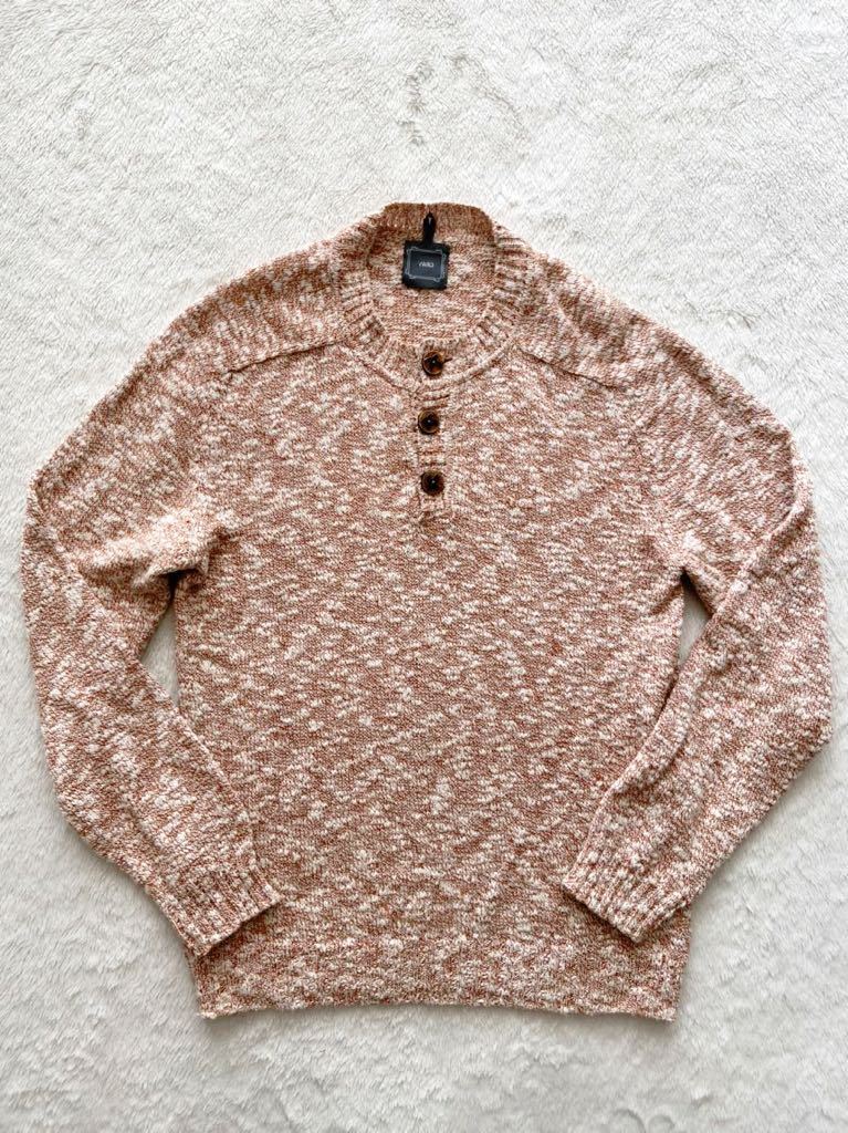 ユナイテッドアローズ購入 GRAY イタリア製コットンリネンセーター size44 へンリーネック メンズ グライ オレンジ