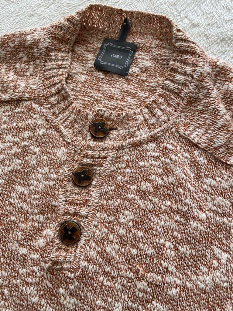 ・柔らかで上質なコットンリネンを使用しヘンリーネックデザインに計算されたモダンなで綺麗なシルエット、ミックス調の色合いがとてもお洒落なセーターになります。