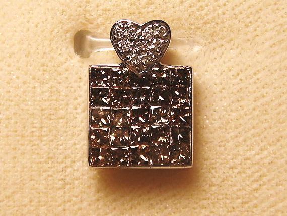 裏面に放射状のカットが施された角ダイヤ、すなわちプリンセスカットのブラウンダイヤが素晴らしい輝きを放つペンダント♪