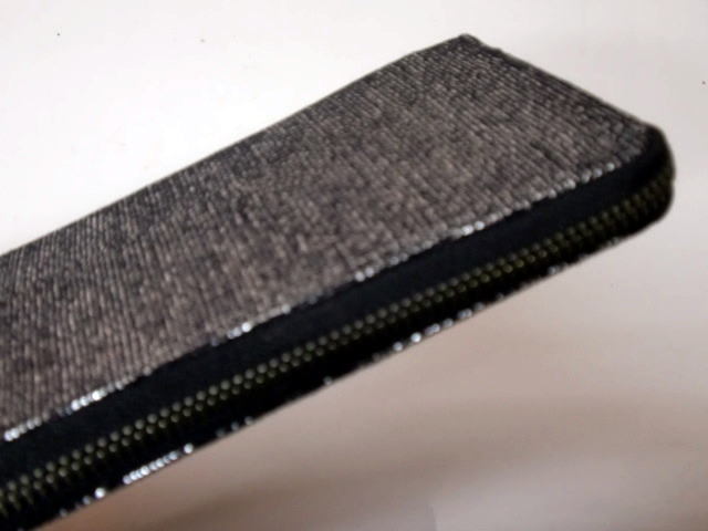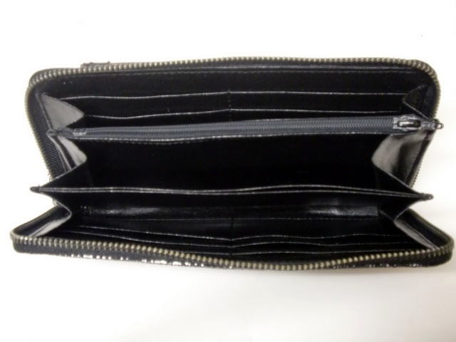 開閉口はファスナー、内に小銭など入れるファスナーポケット・チケット・レシートなどを入れるガードポケット・両サイドにカードが各4枚計12枚入るカードポケット・