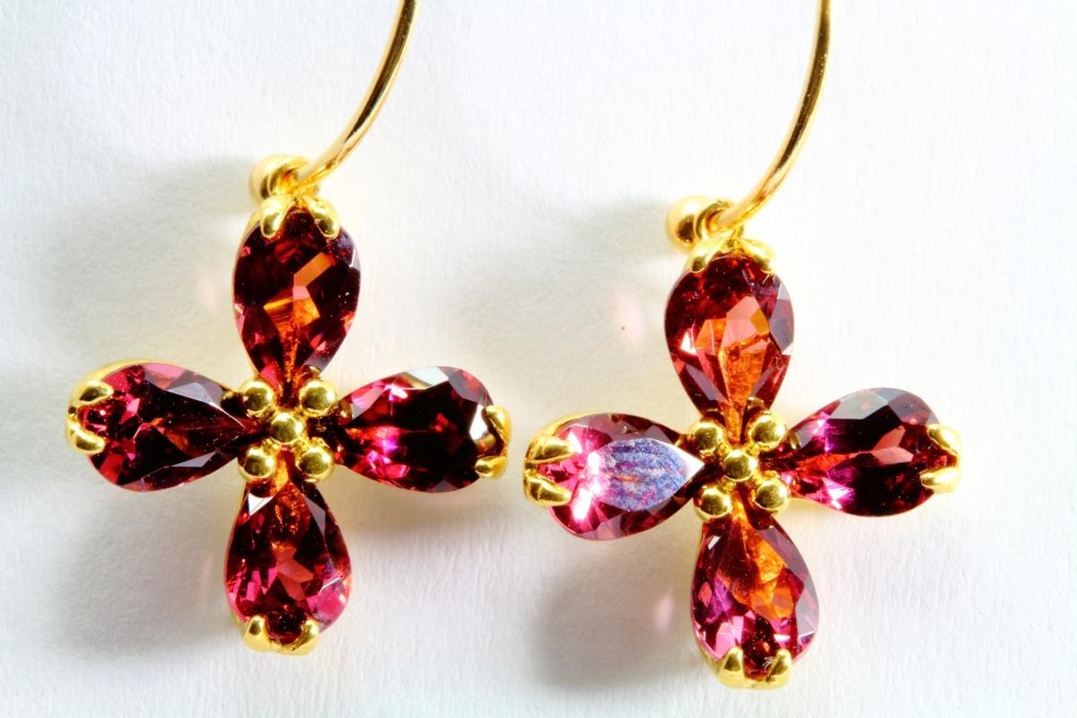 艶やかな輝きを放ちます。テリの見事なガーネットを片耳4ピース使い華やかに