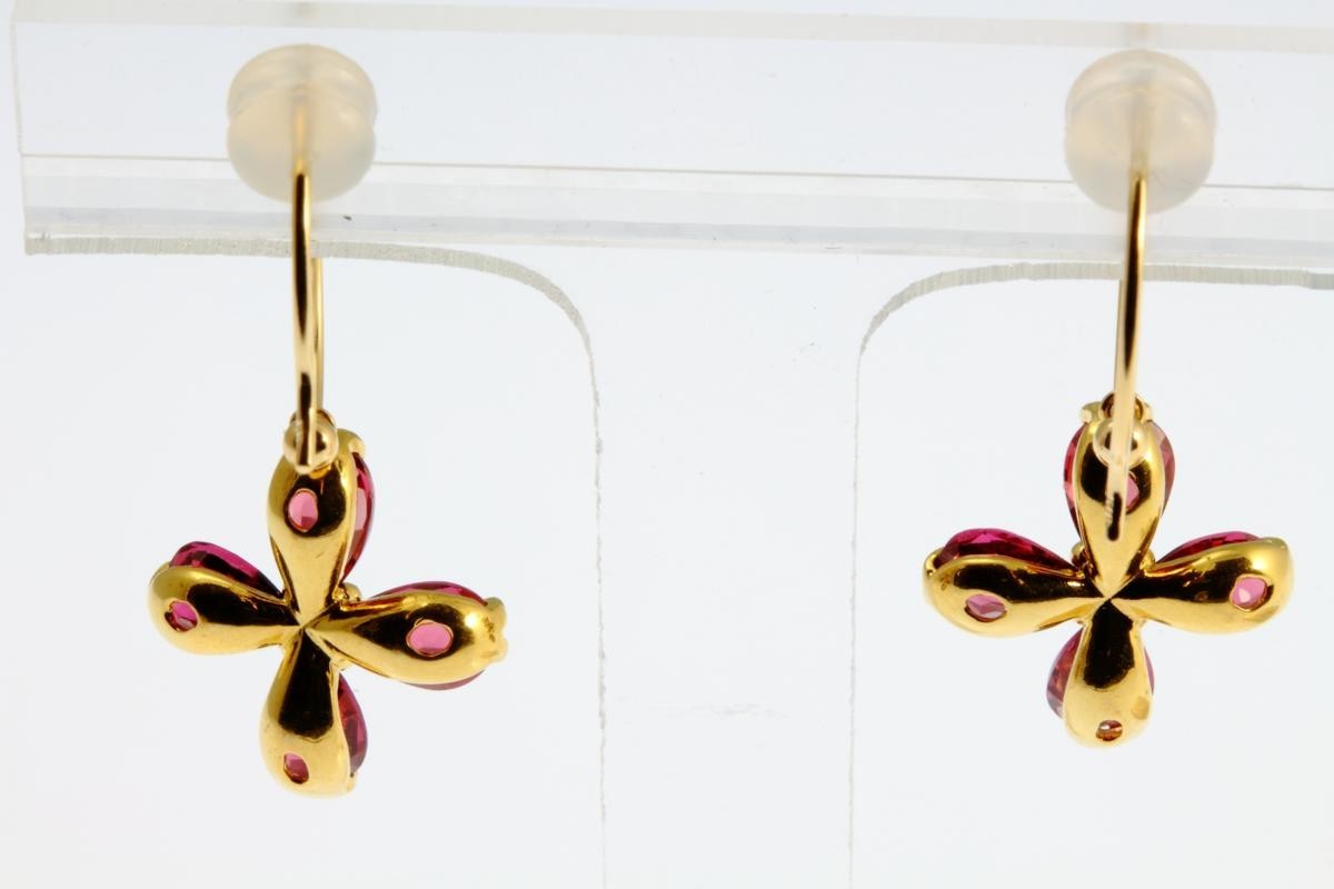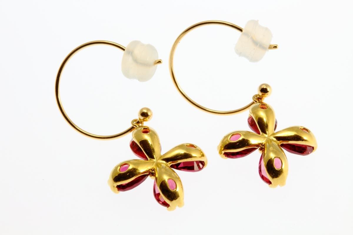 四つ葉 フラワー モチーフ ガーネット フック ピアス K18 取り外し可能 新品 レディース クローバー
