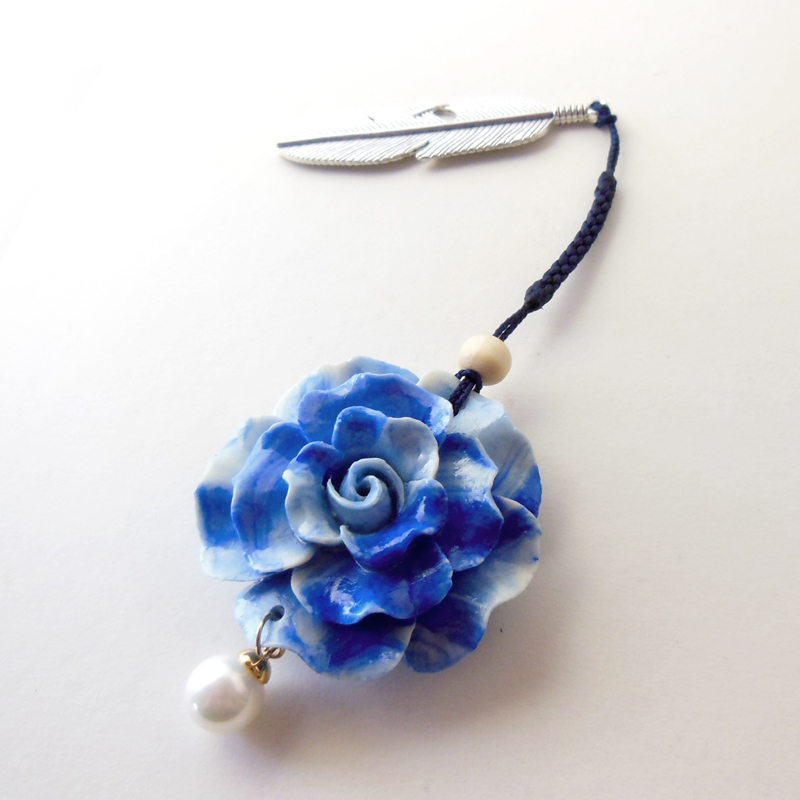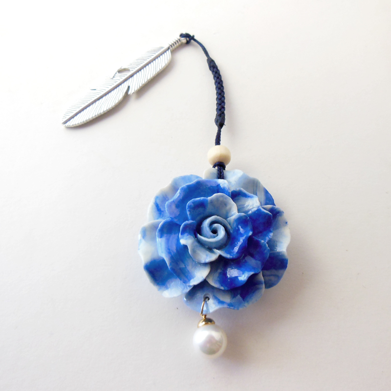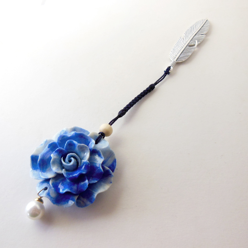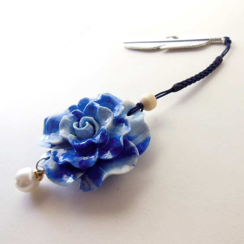 シャコ貝を機械彫刻し、墨流し染色で作り上げた、美しい薔薇の和モダン帯飾りです♪