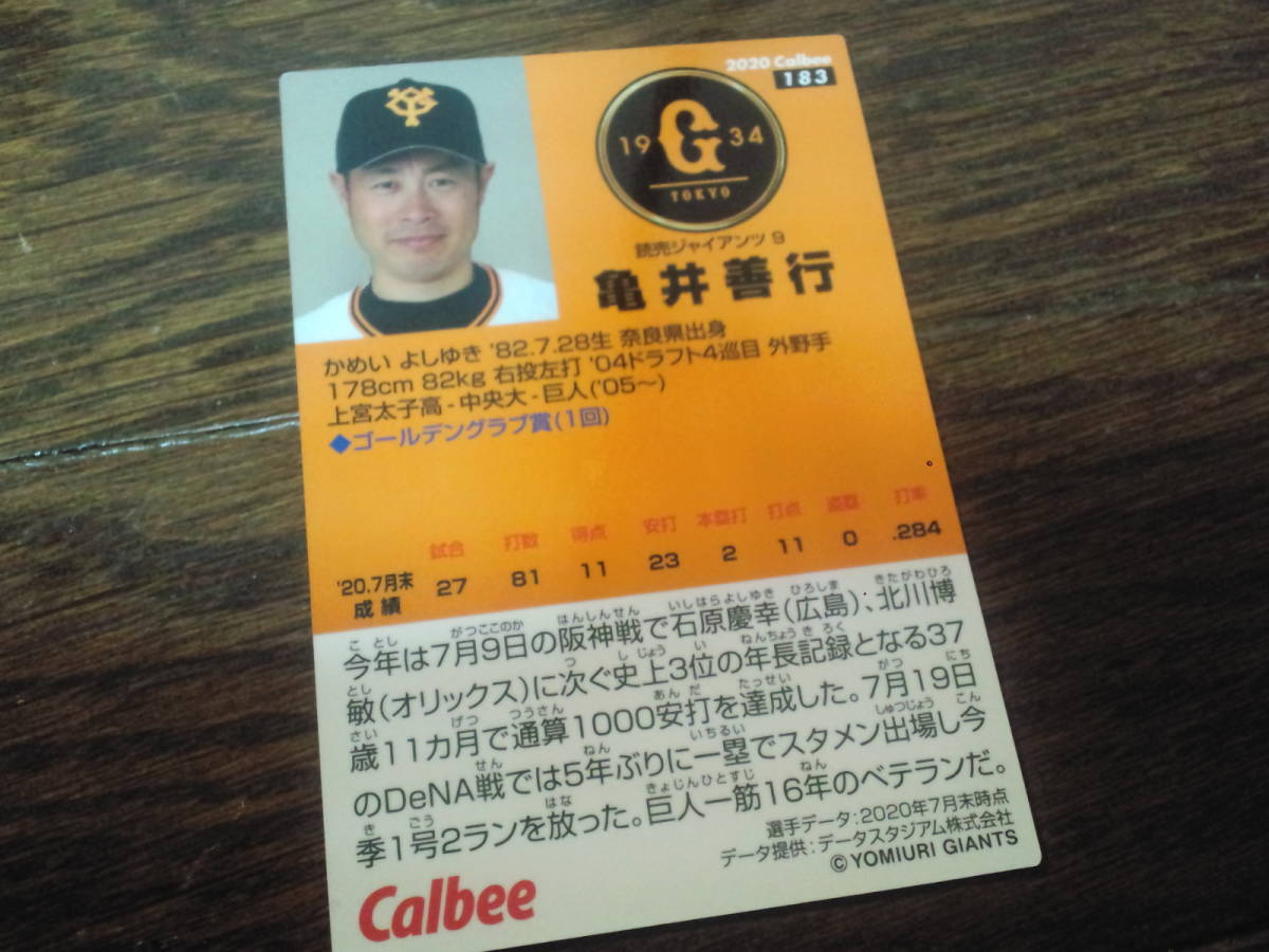 [同梱可]★亀井善行(読売ジャイアンツ)★レギュラーカード(183)☆2020年カルビープロ野球カード第3弾