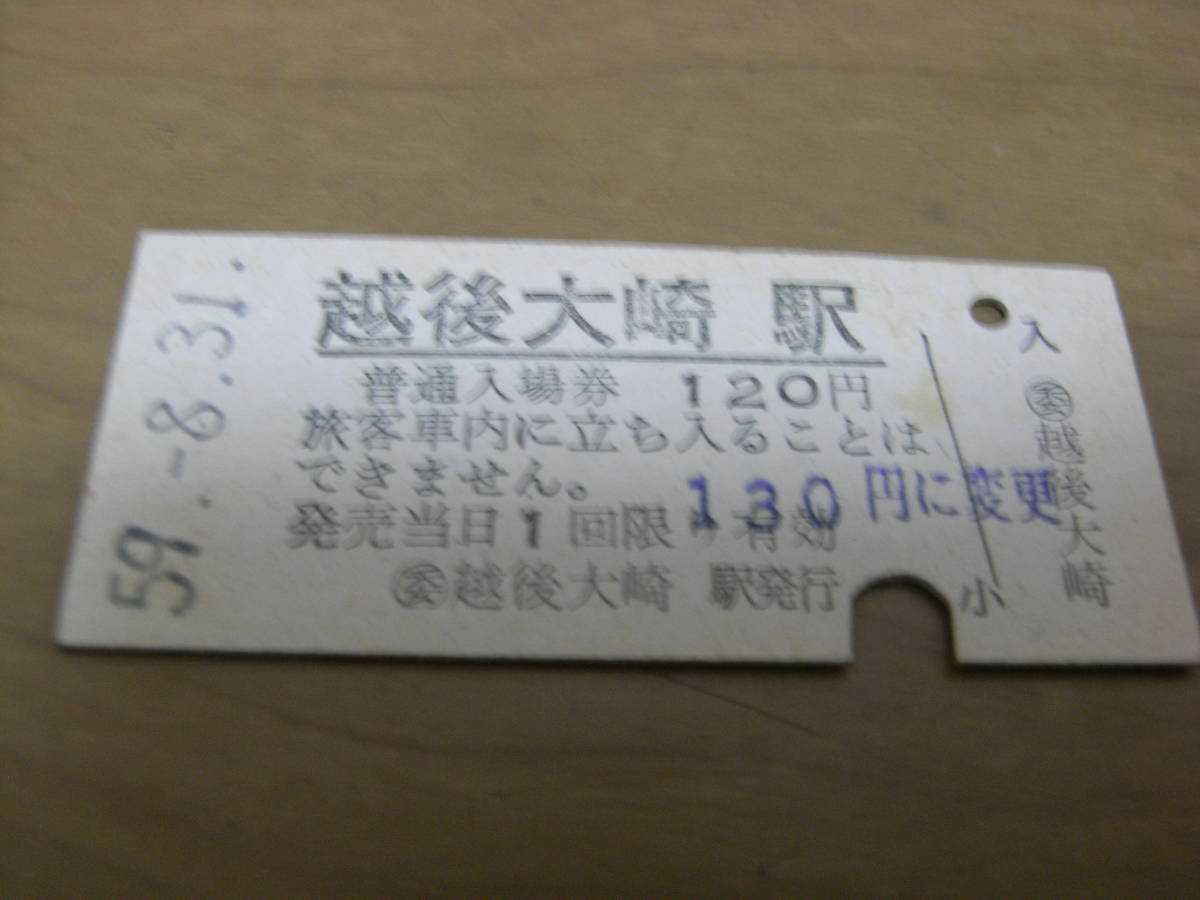 弥彦線 越後大崎駅 普通入場券 昭和59年8月31日