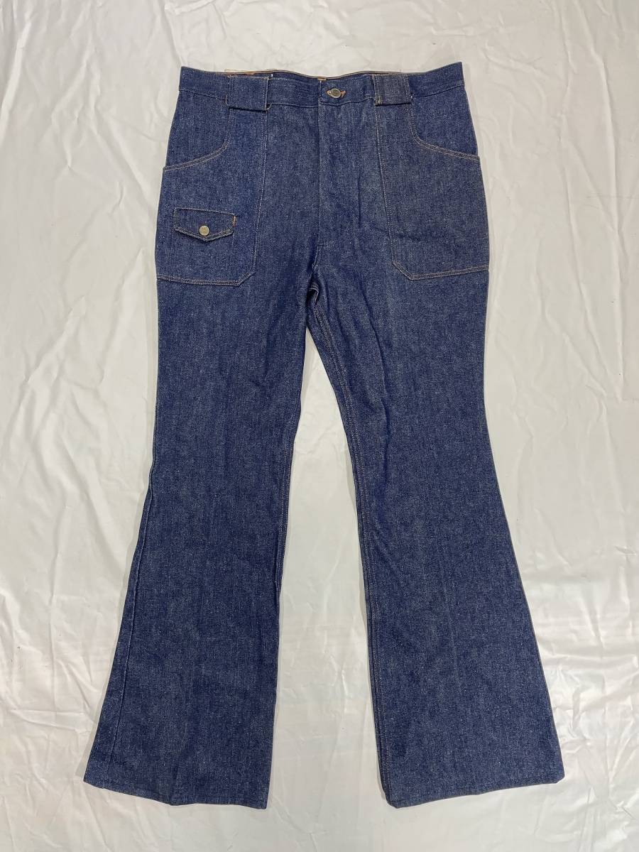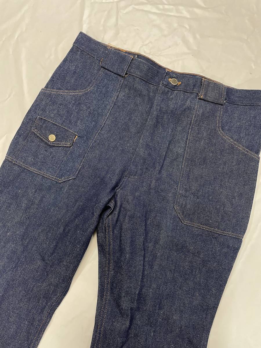 | アクセス頂きありがとうございます。 こちらはアメリカ買付古着 デッドストック デニム パンツ です。 全体的に状態は良いと思います。 W38 L34 ウエスト 45.5㎝ 股上 32.5㎝ 股下 87.5㎝ 裾幅 29.5㎝ 全長 115cm その他、多数出品しております。 こちらもご覧下さい |