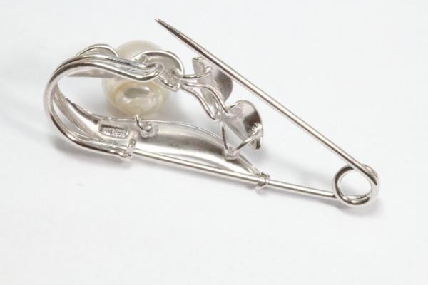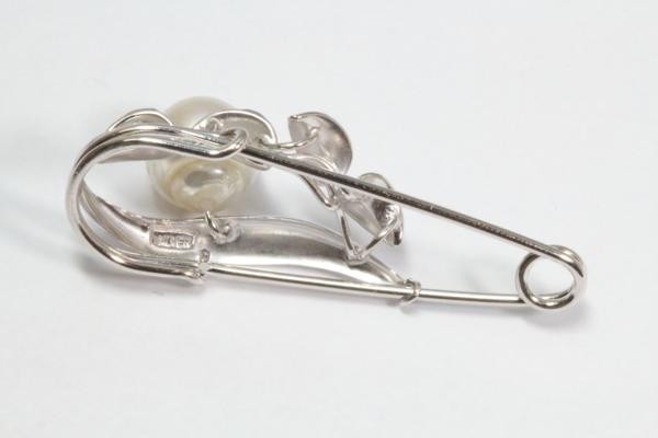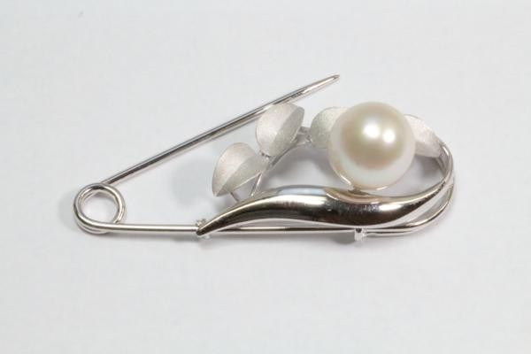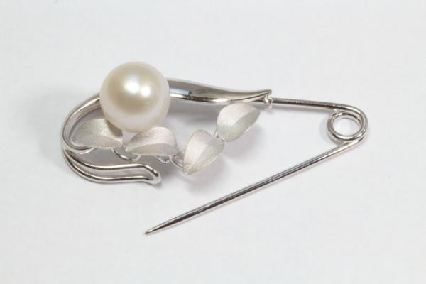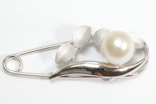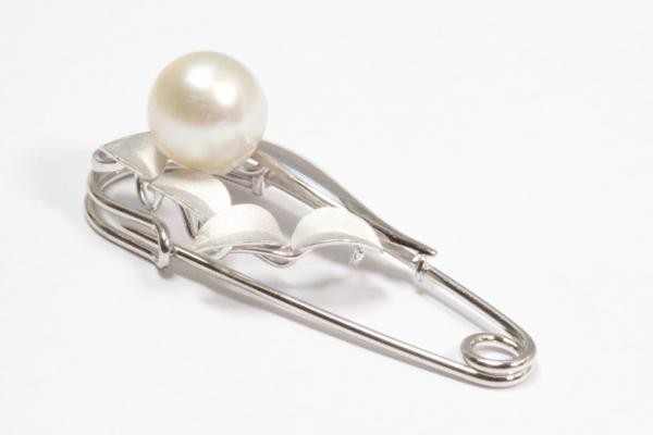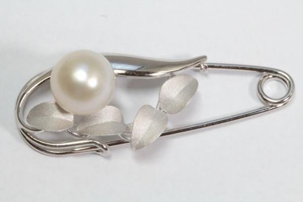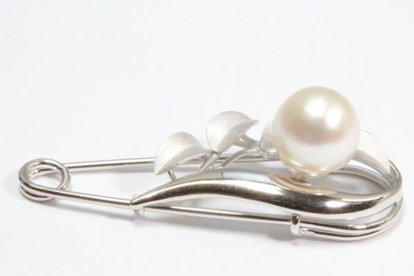 清楚な中に華やかさが溢れる南洋真珠白蝶パール安全ピンタイプブローチ。