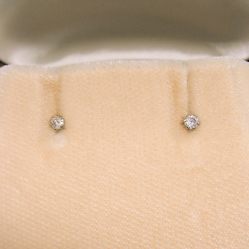 プラチナ枠のシンプルなダイヤスタッドピアス。
