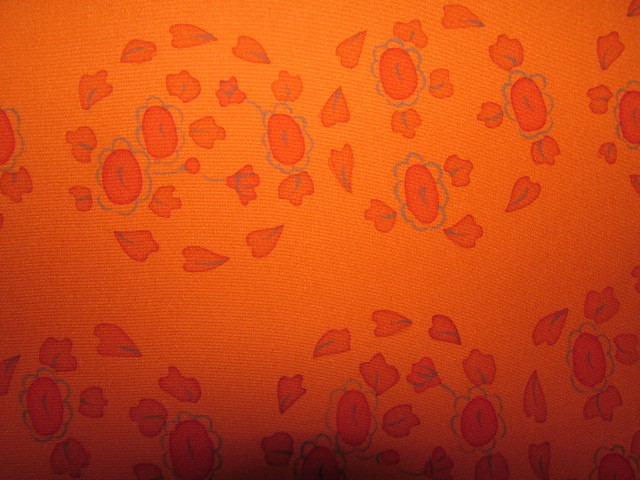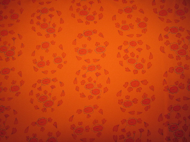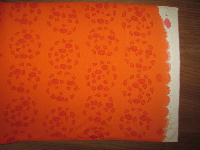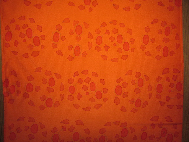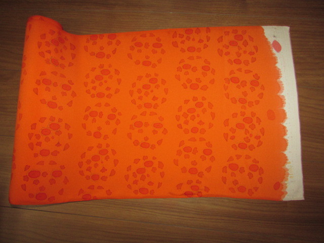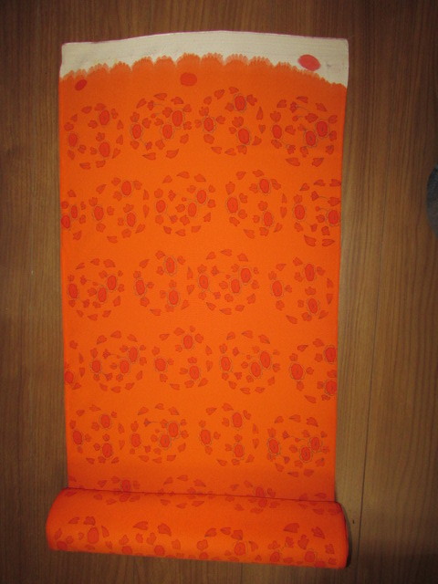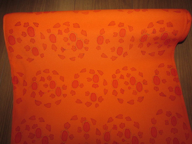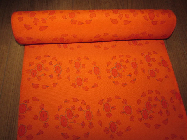 (着物屋・蔵出し)(古布・朱色に花模様未使用コート地羽尺反物)貴重・珍品