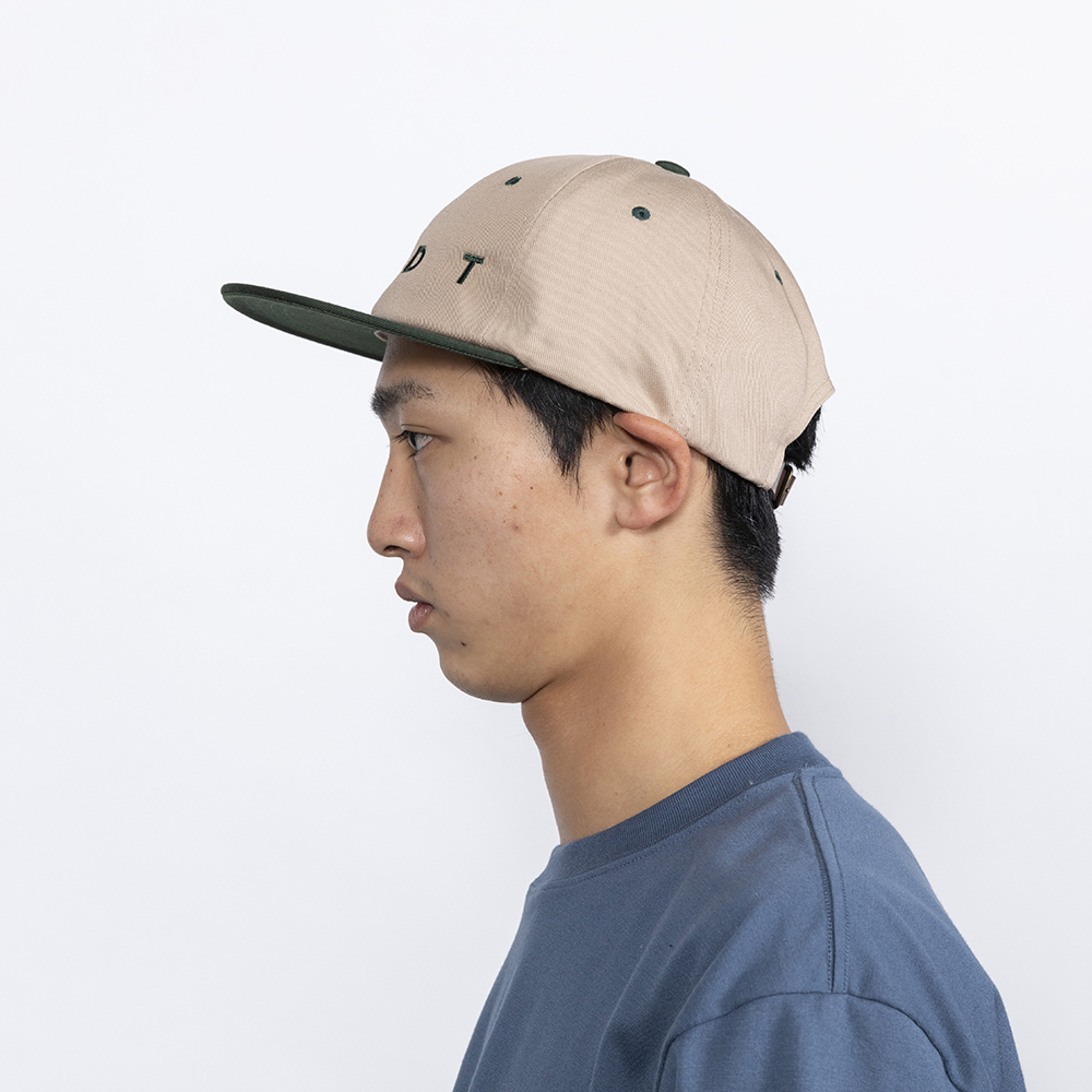 ●ベージュ、ネイビー、バーガンディなど配色した、オーガニックコットン製の6パネルキャップ。