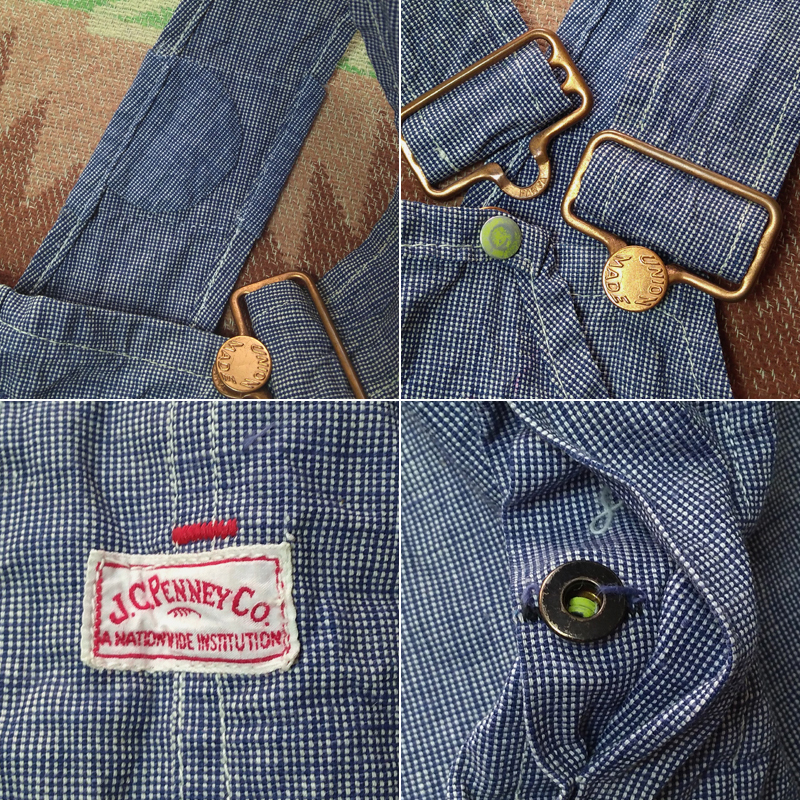 1940年前後(30年代末~40年代初頭)の≪JCペニー≫ピンチェック オーバーオール。
