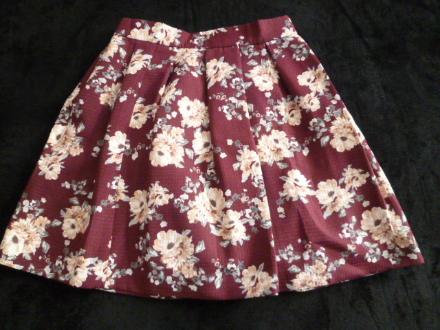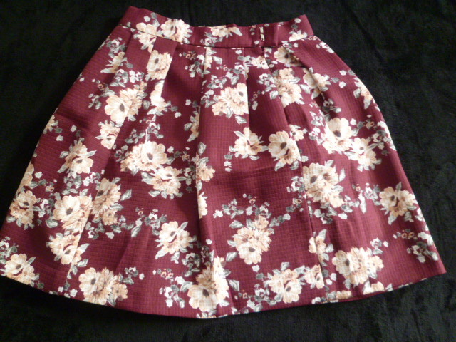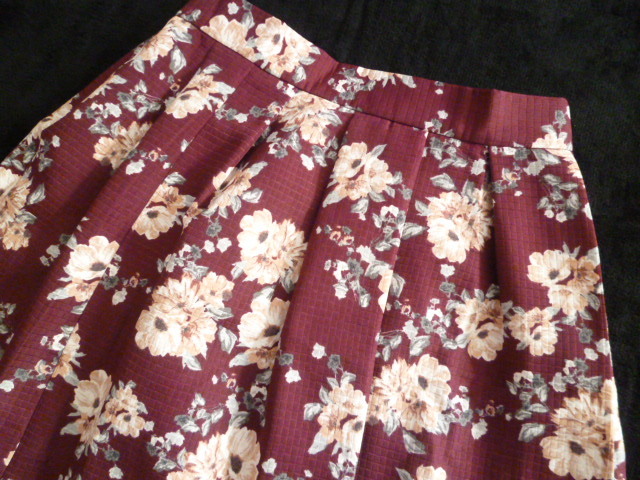 PROPORTION BODY DREESING/プロポーションボディドレッシング△あずき色レトロ花柄ふんわりフレアースカート3/格子薔薇バラばら△SK128②