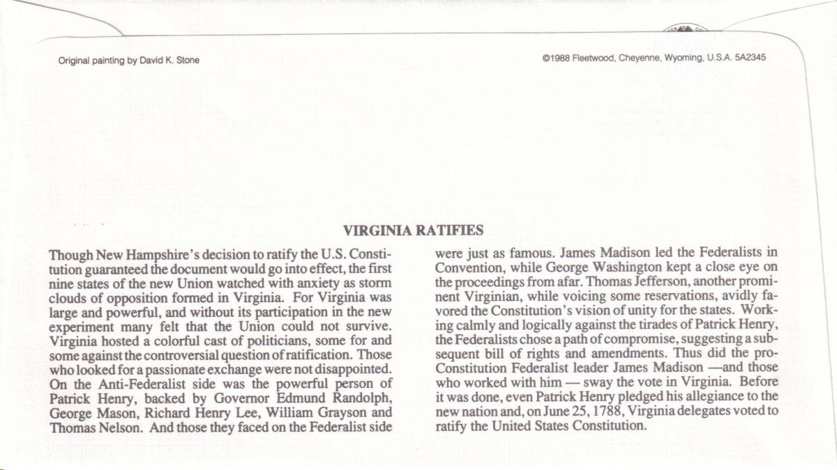 【FDC】バージニア州創立200年(1988年)(アメリカ) t1792