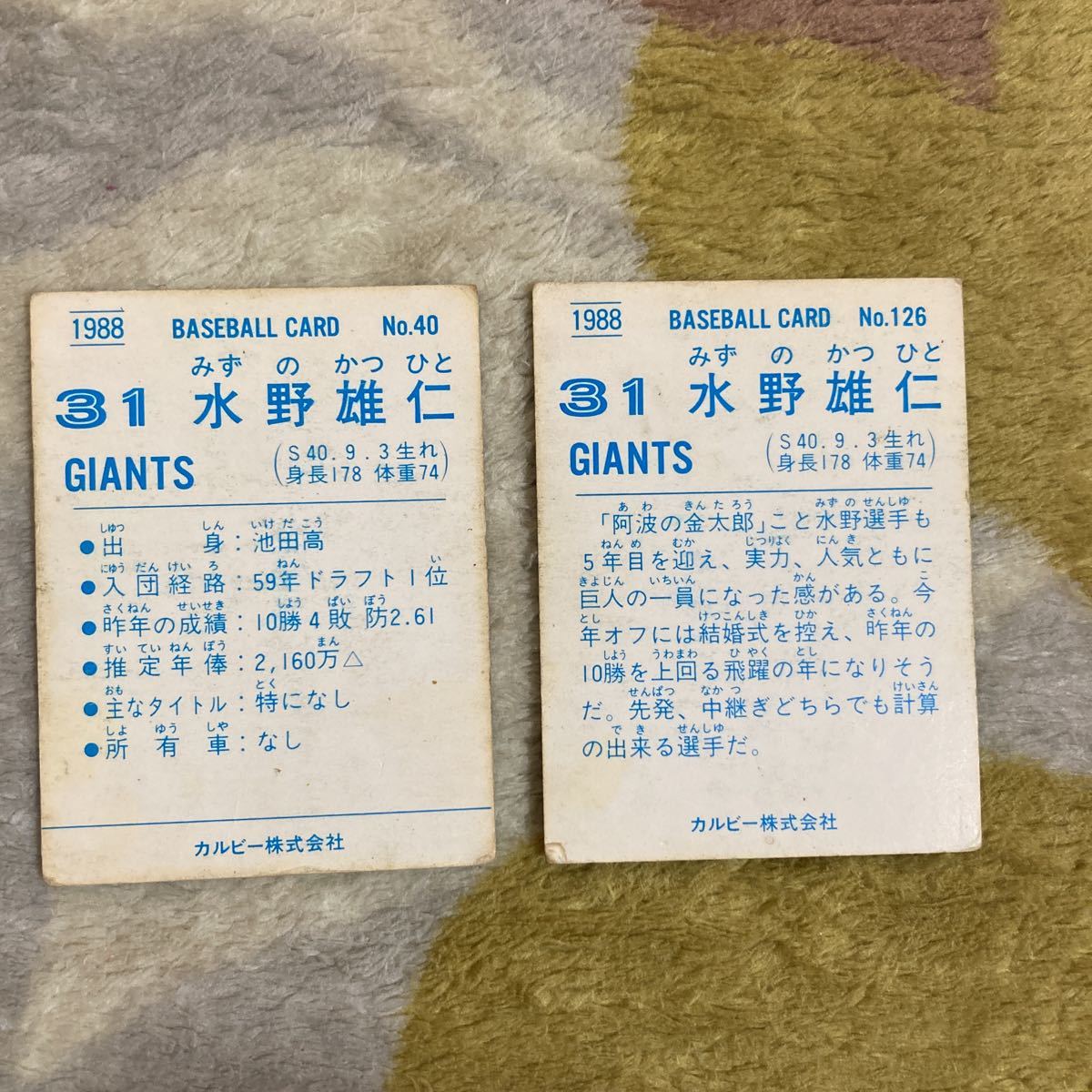 カルビープロ野球カード 1987年 水野雄仁 2枚セット 巨人 当時物 中古の出品です。写真のものになります。