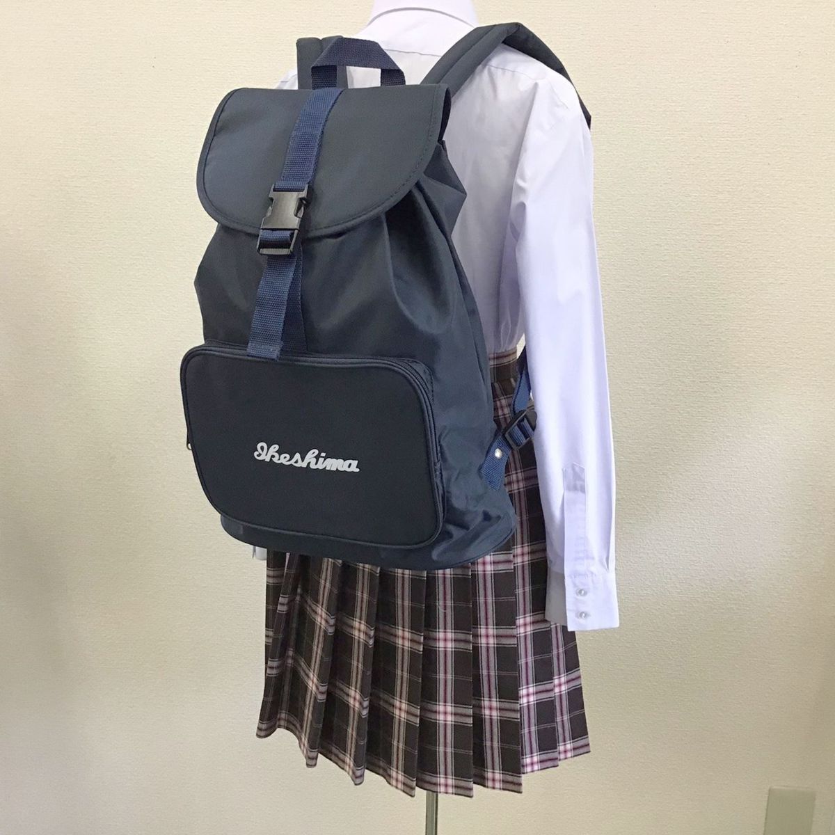 | 校名 | 大阪府 池島中学校 | 状態 | 新品 (タグなし) | サイズ | リュック本体 横:約38cm/縦:約43cm/マチ:約14cm | ポケット部分 横:約25cm/縦:約17cm/マチ:約3cm |