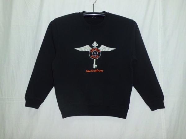 NEWYORKPRESSの別注品トレーナーです。新品 黒綿:100%M寸実寸です。着丈:64cm 肩幅:49cm胸幅:53cm 袖丈:58cm綿100%トレーナーです。前に大きな刺繍入りです。裏毛生地です。起毛ではありません。定価¥7900+税です水曜日は定休日ですので、連絡、発送等の取引業務は 出来ませんのでよろしくお願い致します。 定休日以外連絡可能な時間は、11時~18時迄です。