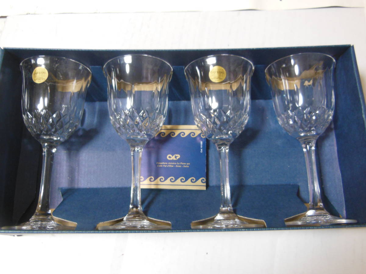イタリア製 CAPRI クリスタル ウイングラス 4客セット 高さ16.7cm 口径7.5cm 説明書付き 送料無料