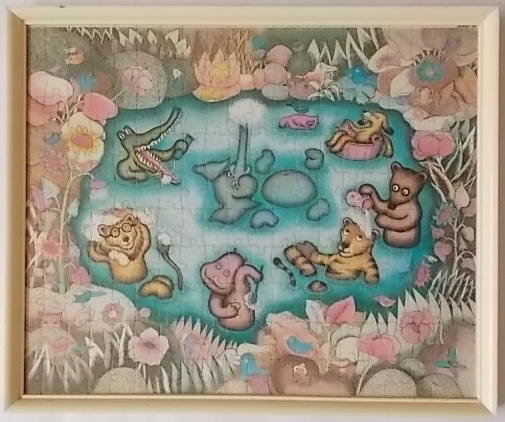 ◇【インテリア】ジグソーパズル ユニセフ(動物たちの入浴)200ピース 特注木製額付き