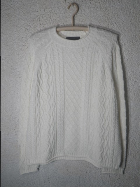 そこまで厚手ではないケーブルニットになります、