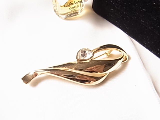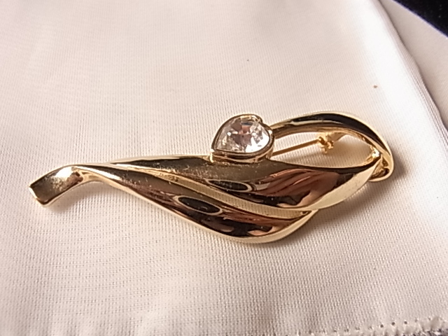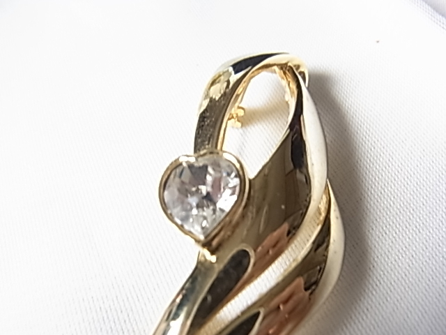 ハート型が可愛いラインストーン ゴールドカラー 金色 大人ガーリー リモートでも可愛く目立つ 映える ブローチ◇