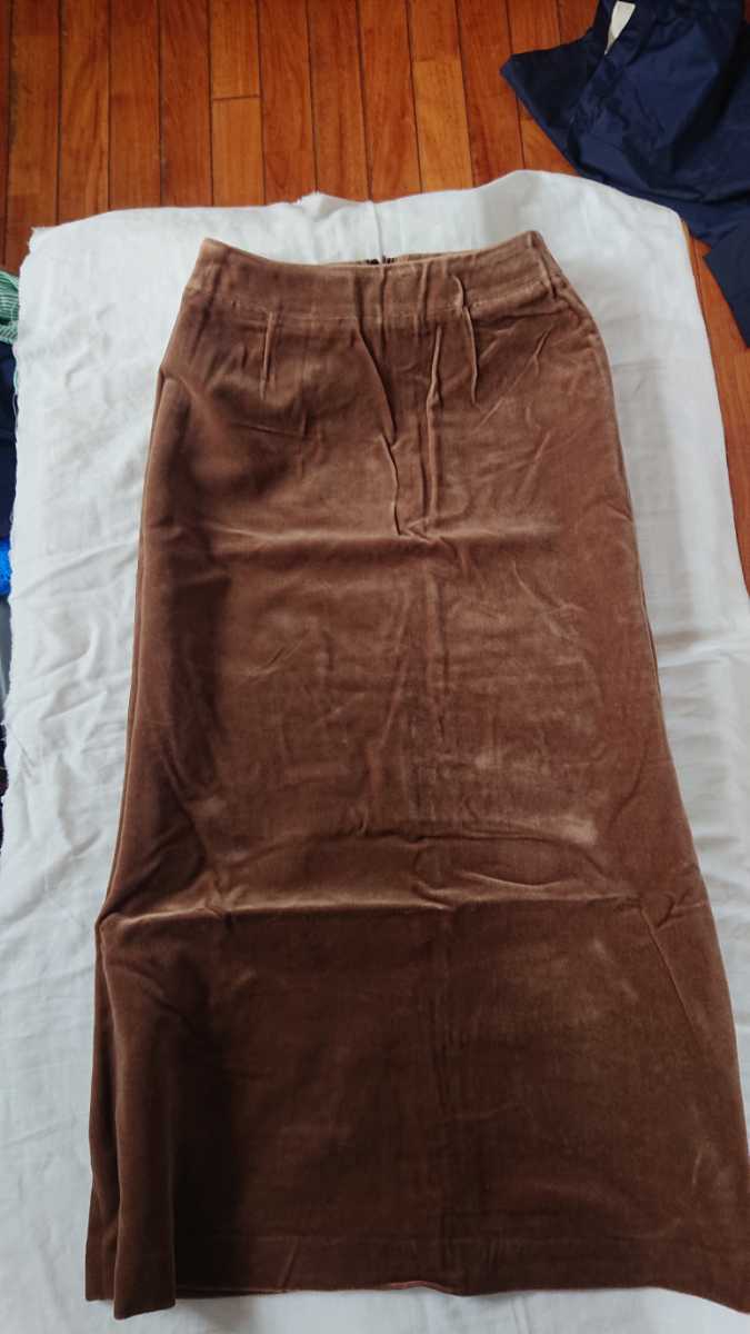 ホコモモラのロングスカートです。ベッチンで、色は茶色です。