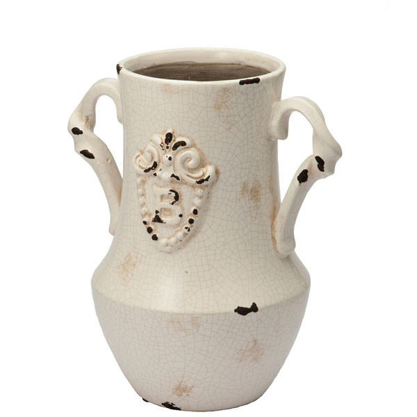 新品★即決★ハンドル付きフラワーベース★陶器★アンティーク風★フレンチ★花瓶★h26cm★造花用★インテリア