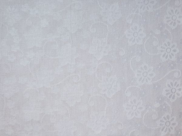 157707《生地の切売》ツタ柄 白色 パナマ生地 綿100% インド産【50cm単位】