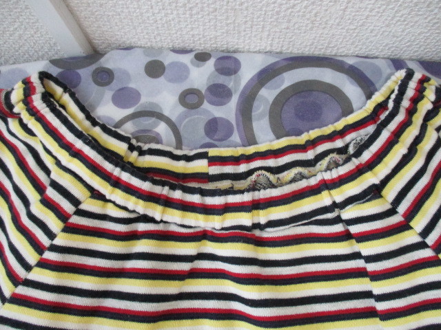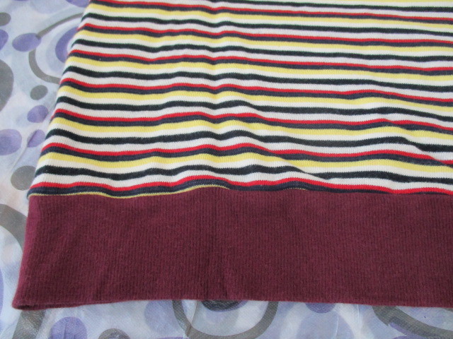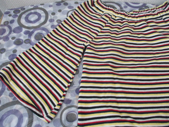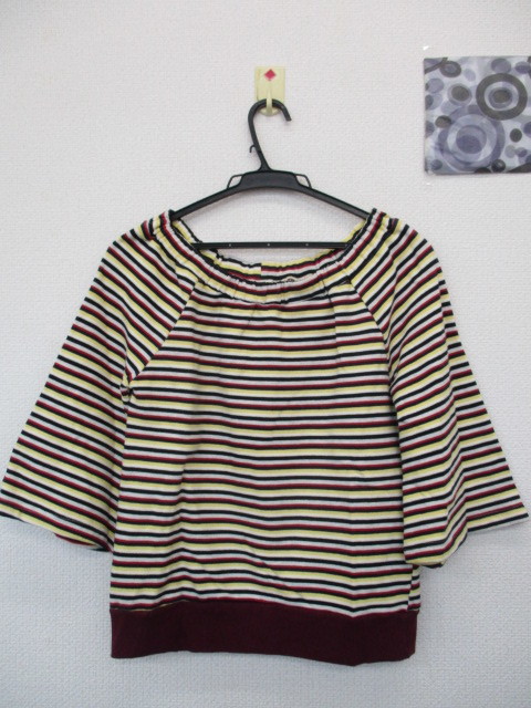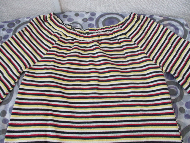 ★7分袖 マルチボーダーカットソー 首廻りゴム ラグラン フレアー袖