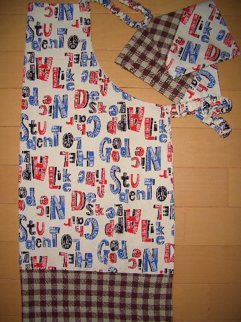 エプロン、三角巾の2点セットです。発送は自宅にて計測しますので、実際送料に誤差が生じる場合がございます。この場合請求、返金は一切しませんのでご了承下さい。また、事故等がありましても保障致しません。 ◎サイズはあくまで参考ですので、実寸で照らし合わせて下さい。実寸(平置)*エプロン着丈 63cm 身幅 58㎝~*三角巾周長 54cm~ゴム付(素人採寸になりますので多少の誤差はお許し下さい。)◎首、腰周りがゴム仕立てですので脱ぎ着がとても簡単です。お食事や遊びのお供にいかがですか?  ★その他 出品しておりますので、お時間がございましたら覗いて見て下さい。