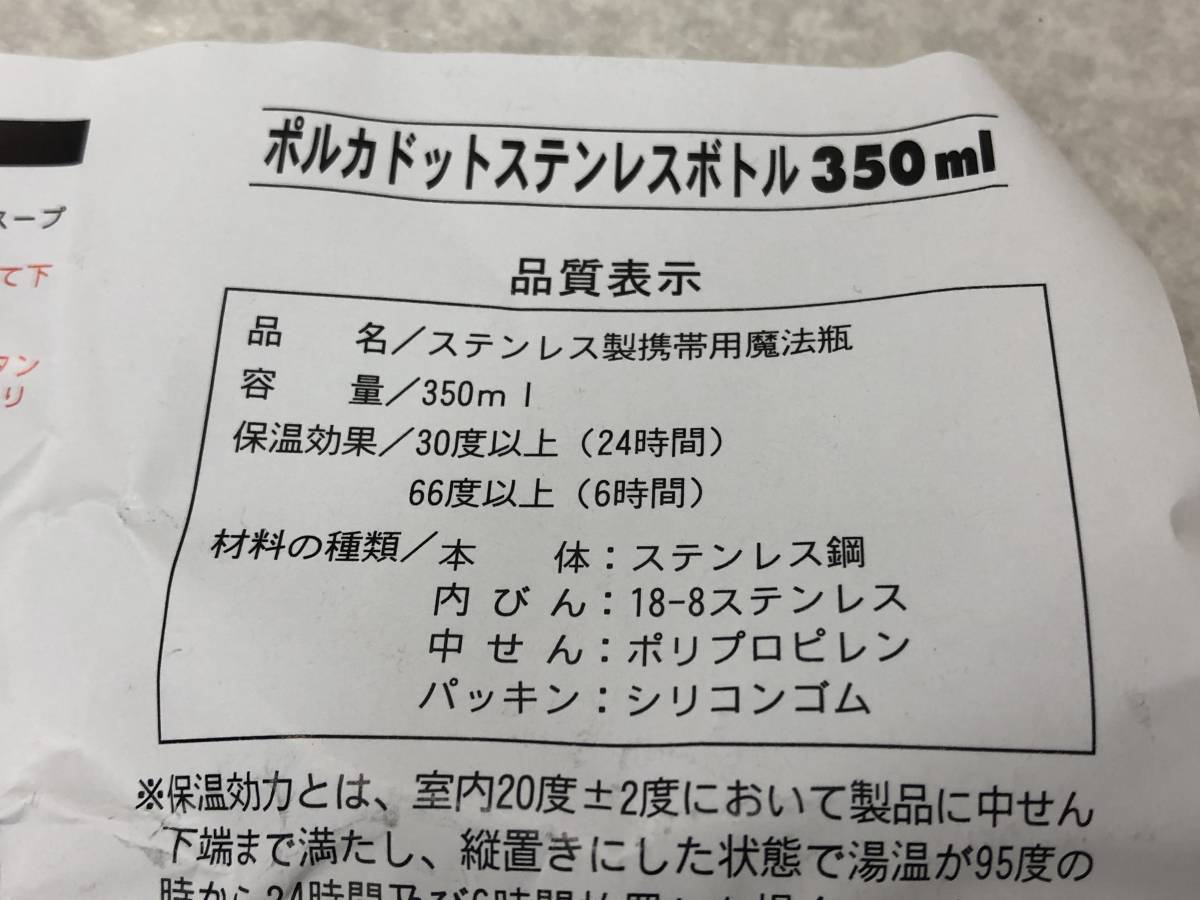 | 【F-2】 ポルカドット ステンレスボトル 350ml | ||