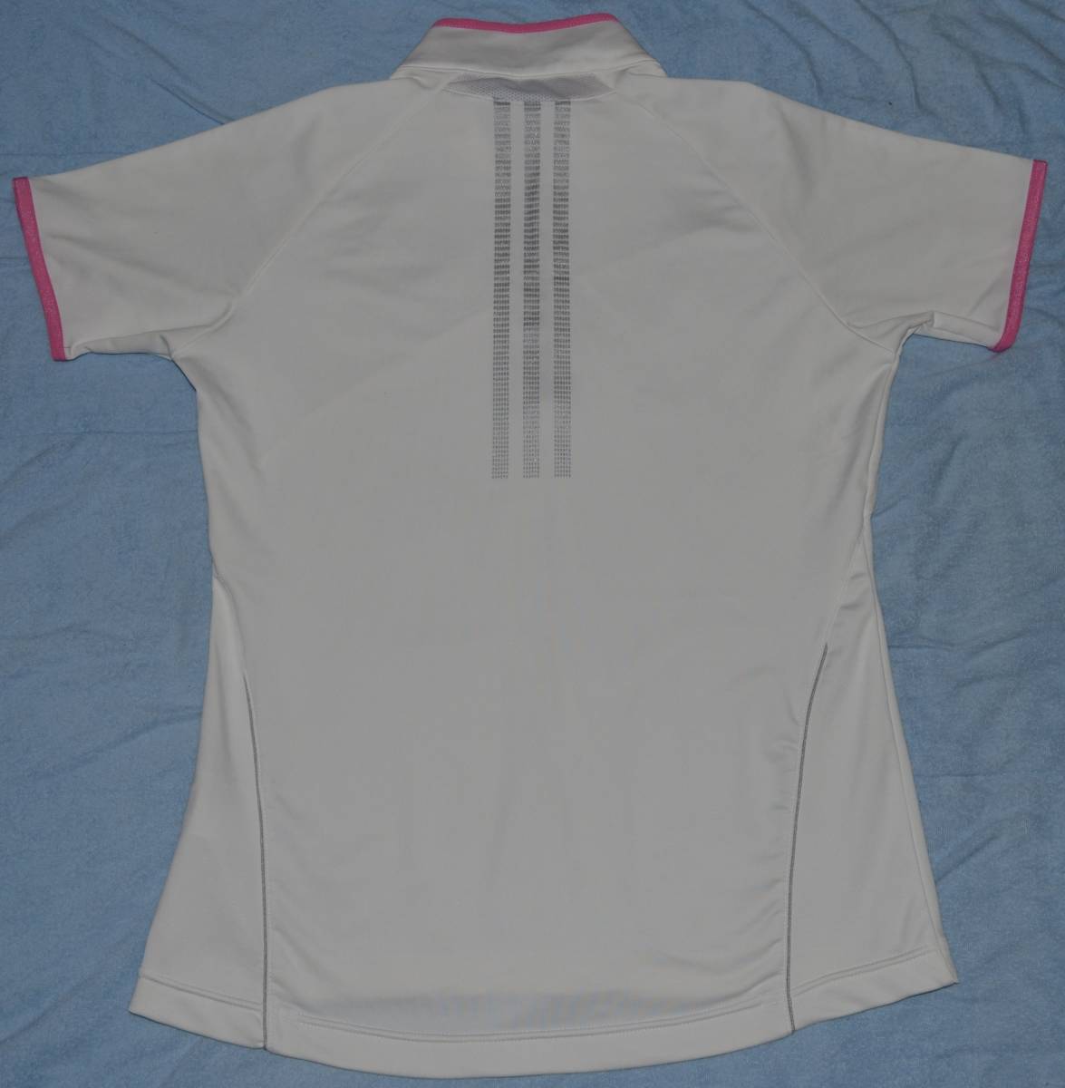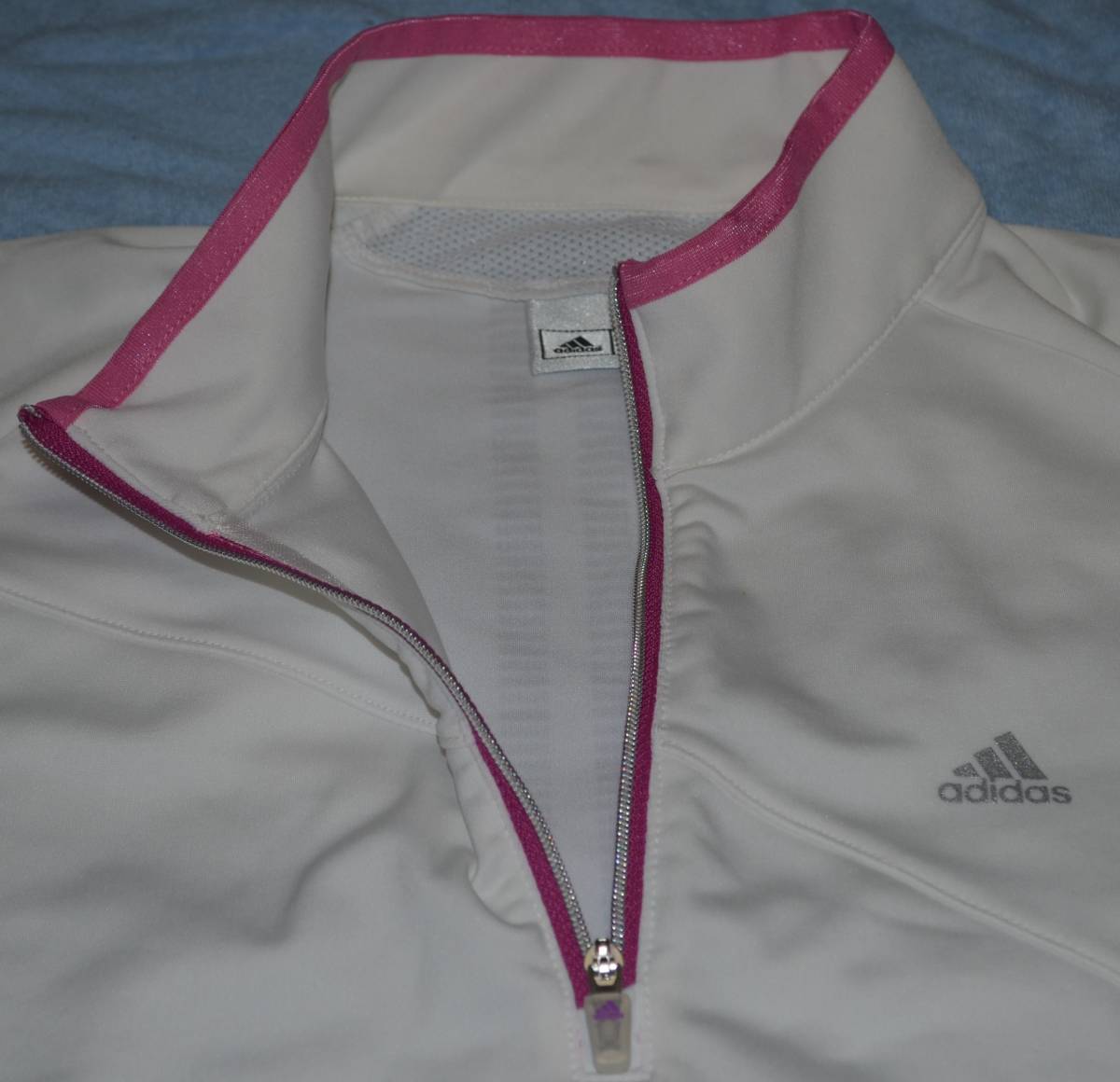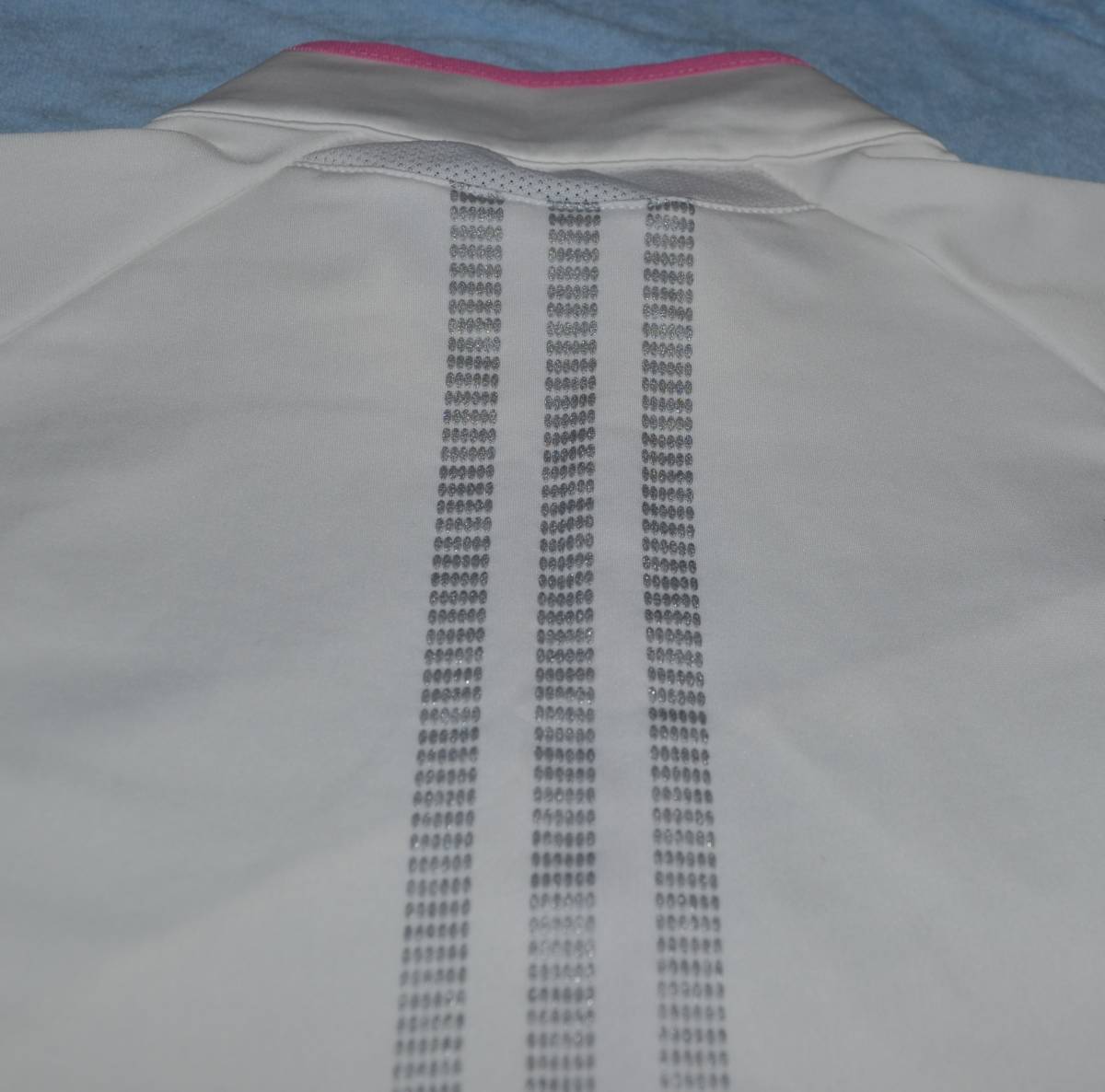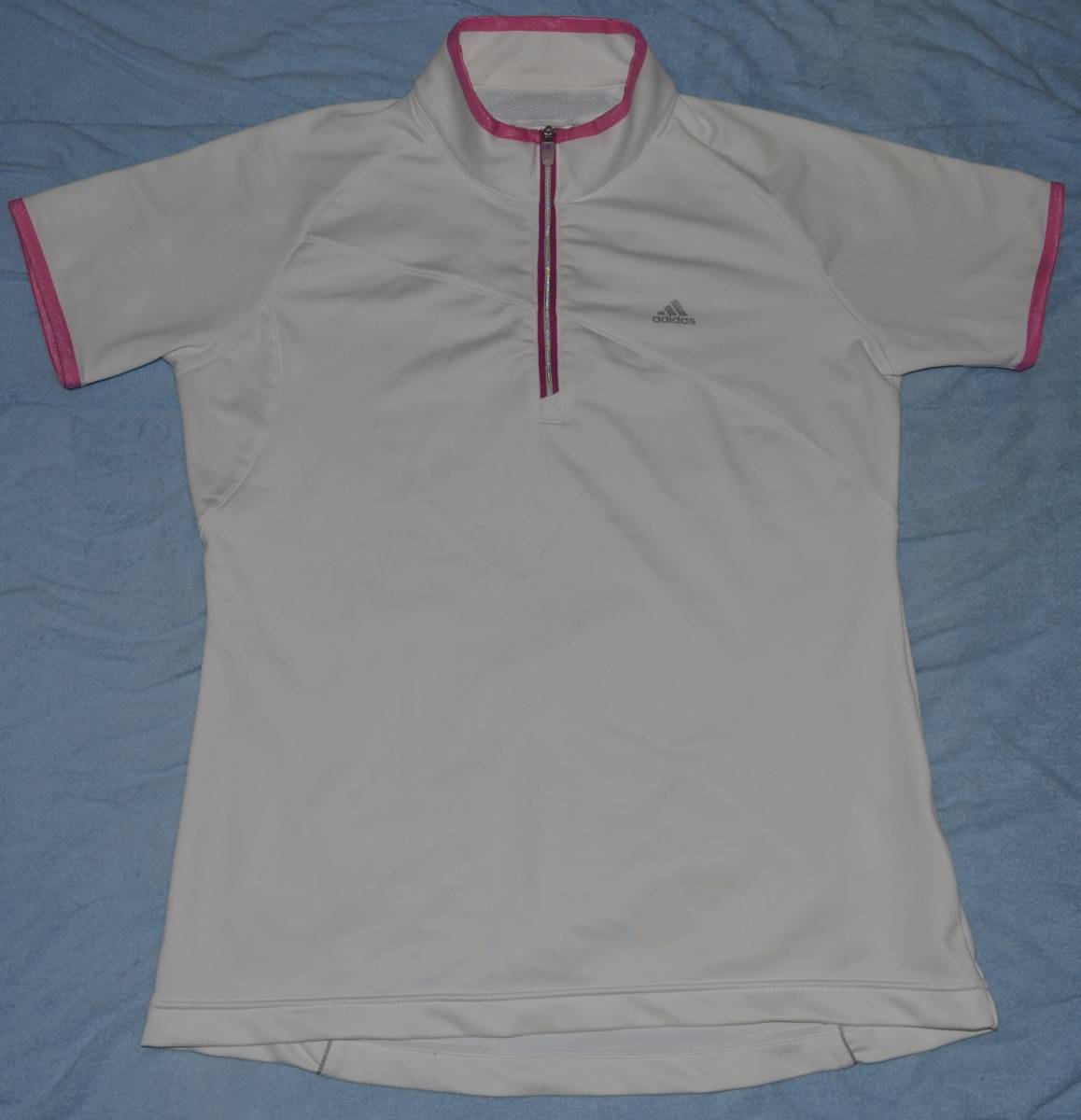 05【中古】*adidas アディダス サイクリングトップス 3ストライプス 半袖Tシャツ ジップアップ メッシュ M 白Xピンク 送料無料