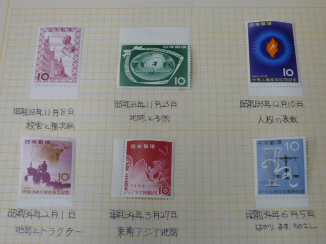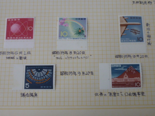 【委/斎】 20LH S 日本切手 №25 1958年~ 各種 記念 3リーフ 計25種+ペア 未使用ヒンジ貼