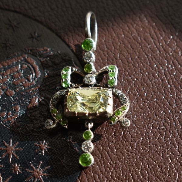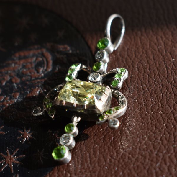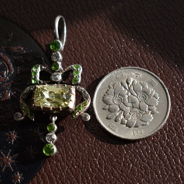 ジョージアン アンティーク 大きなシトリン色ペーストのリボンのチャーム イギリスより 本物保証 18世紀 銀製 本物保証 6g