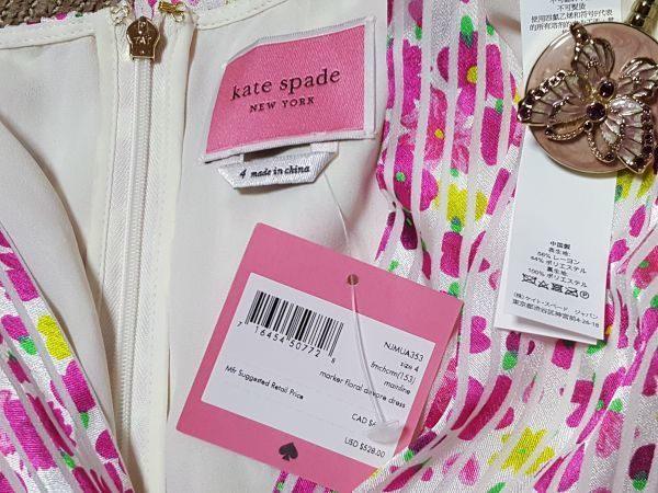 新品 送料無料 US4号/JP9号~11号ケイトスペード ニューヨークKate Spade NewYorkフローラルプリントワンピースピンク