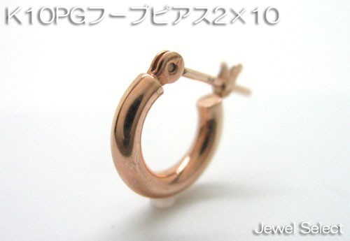 K10PG ピンクゴールド 2×10 フープピアス 片耳用