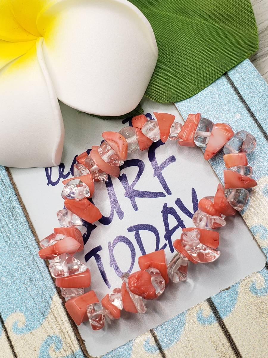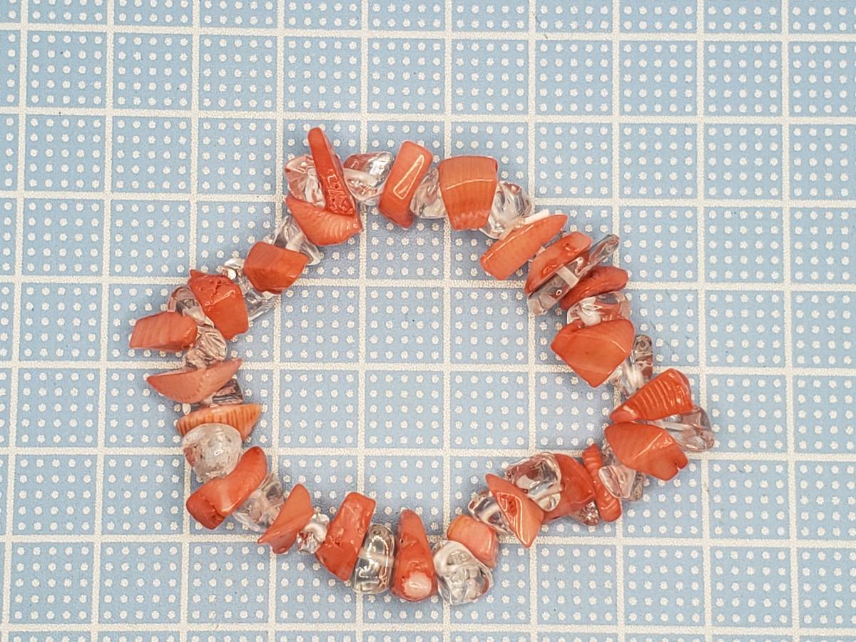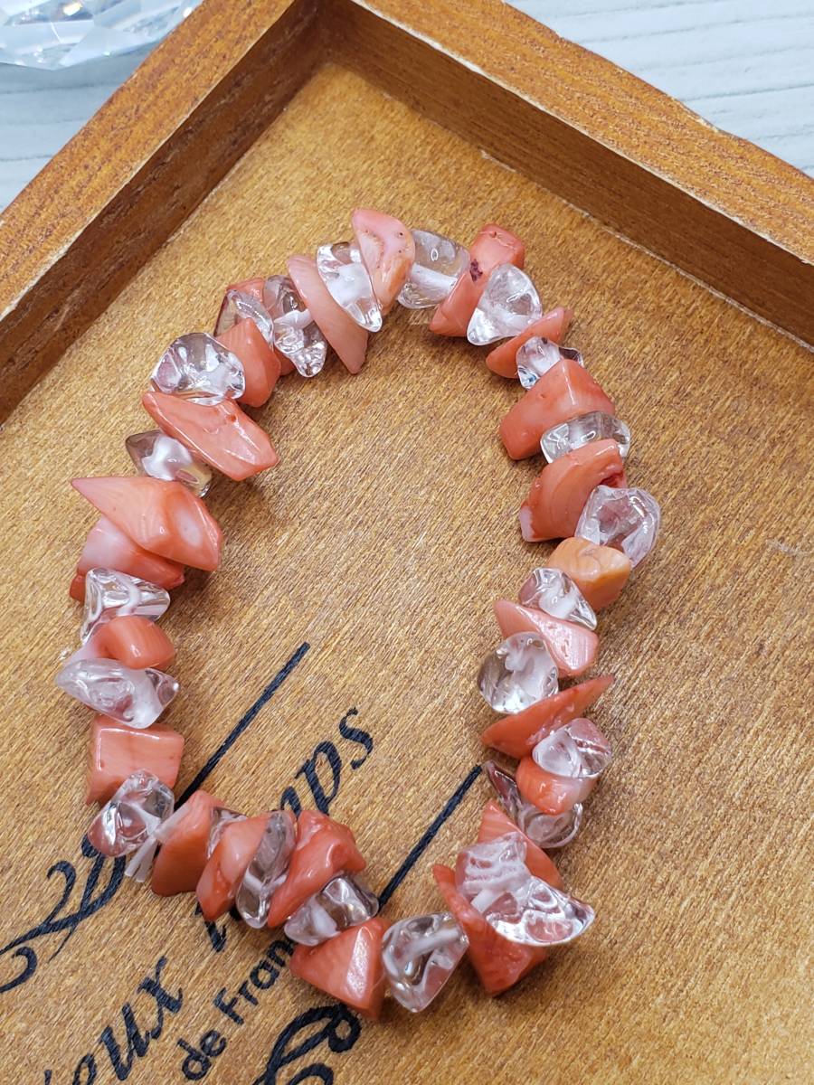 コーラル&クリスタルのさざれ石のハンドメイドブレスレットです。