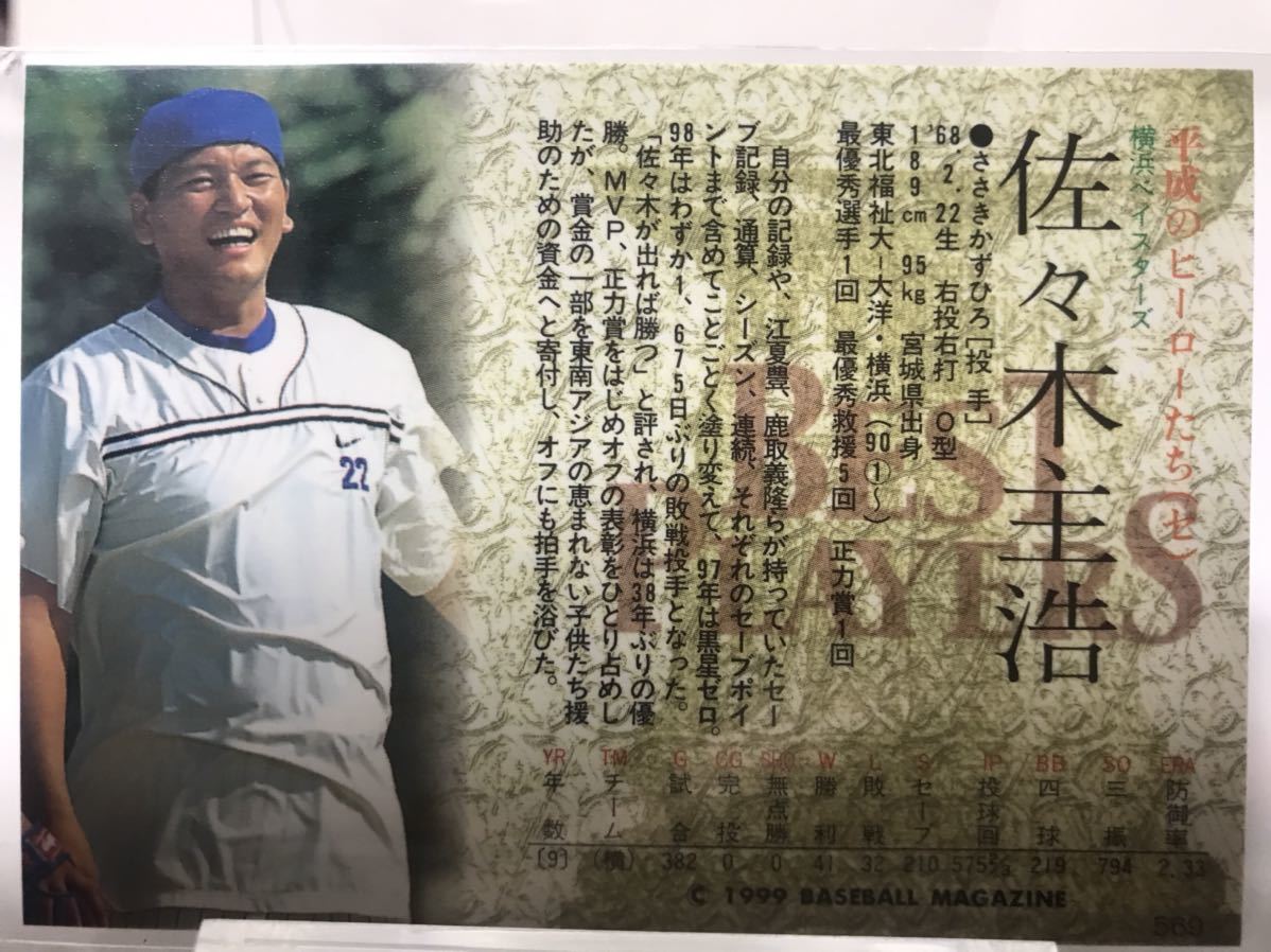 佐々木主浩 ベストプレイヤーズ 横浜ベイスターズ BBM 1999 ベースボールマガジン