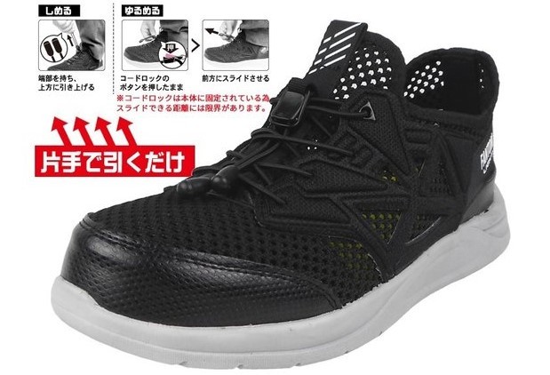 片手だけで簡単に靴紐を締められる「コードロック」付き
