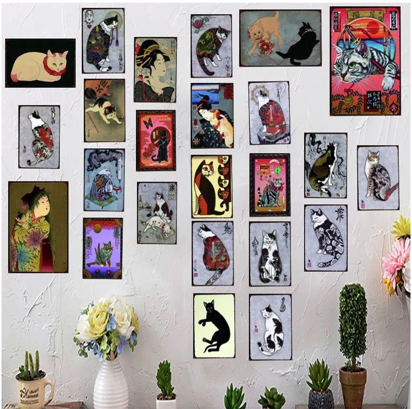A3255 メタル サイン ブリキ 看板 金属 製 プレート サムライ 猫 侍 武士 刀 般若 鬼 浮世絵 和風 日本 タトゥー【3】