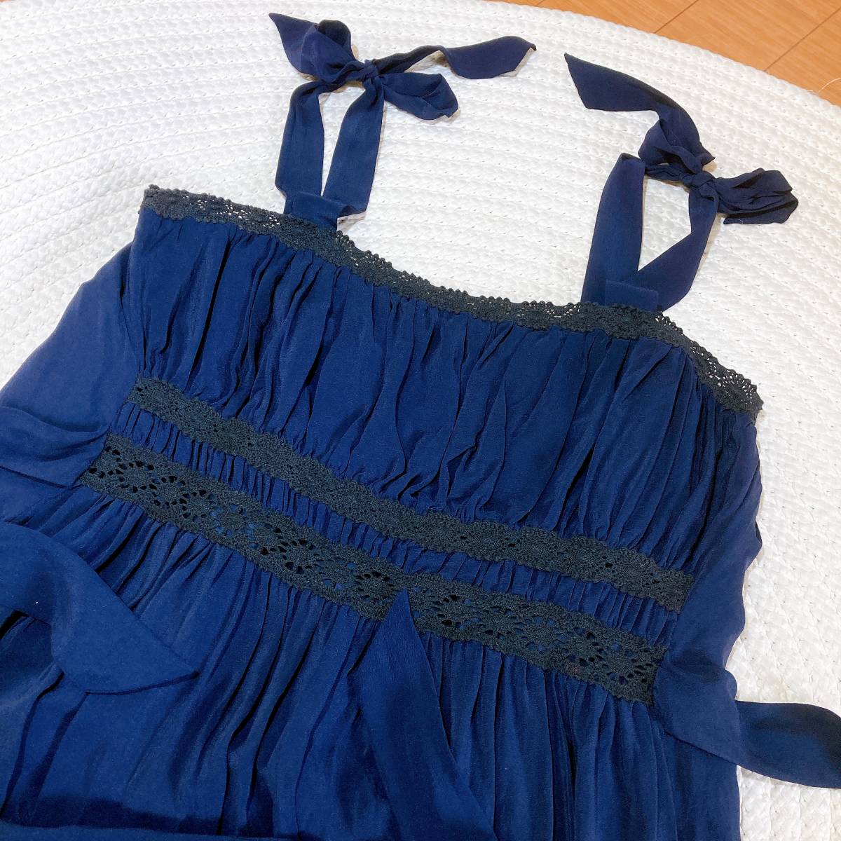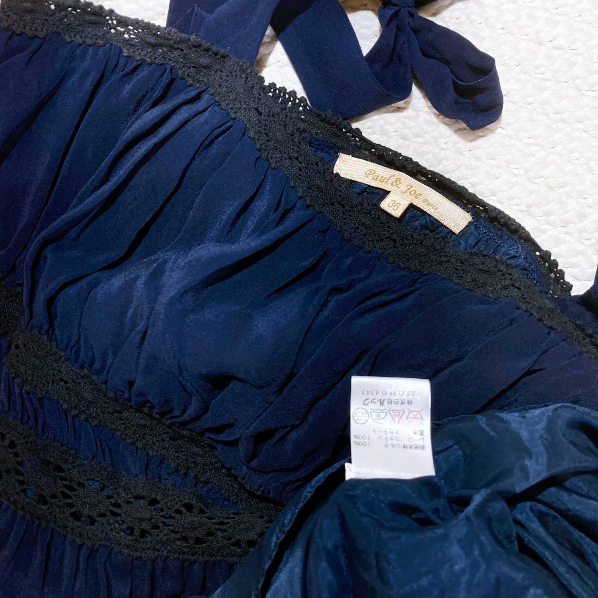 L803■ポール&ジョー★シルク/紺/レース★キャミワンピース■36 | |||||||||||