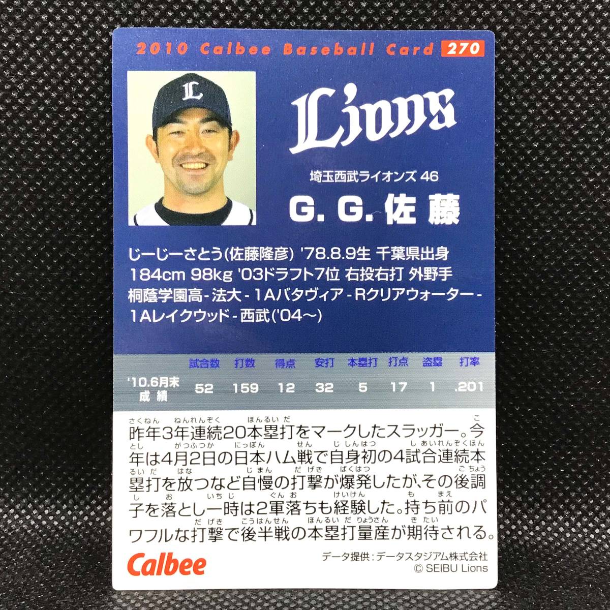 | CFP【当時もの】カルビー 野球 カード 2010 No.270 G.G.佐藤 佐藤隆彦 プロ野球 埼玉西武ライオンズ | |